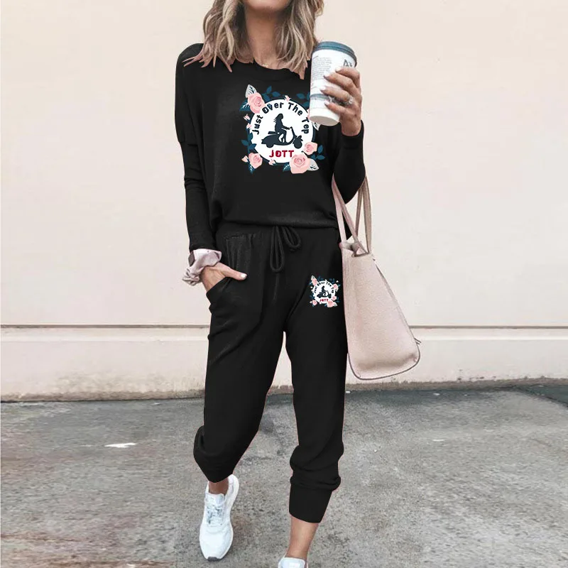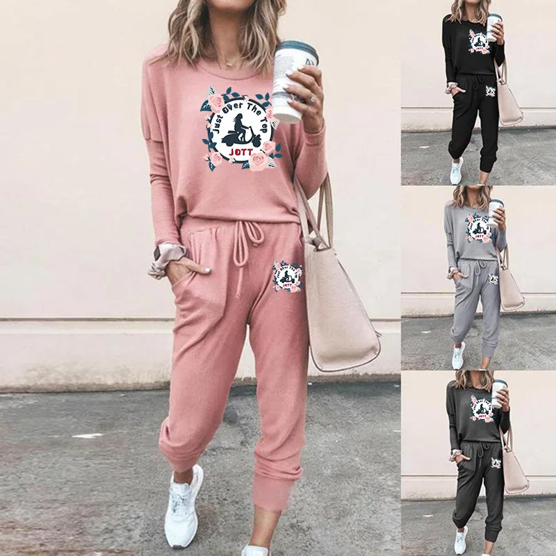 Женский зимний костюм розового цвета с принтом JOTT, спортивный пуловер с трендовым рисунком из 2 предметов, однотонная Повседневная модная женская одежда, женский костюм