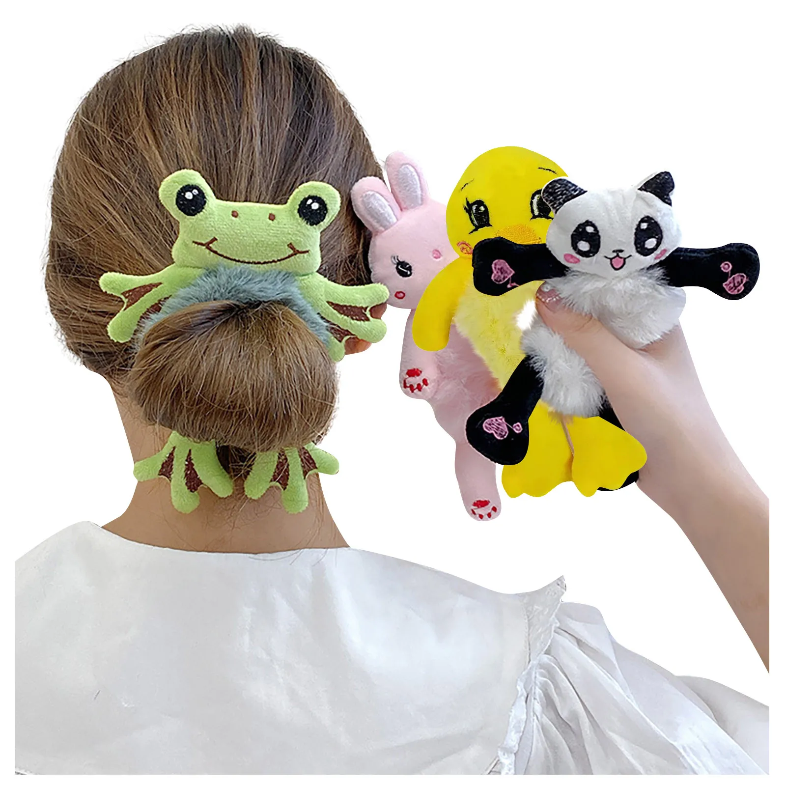 Резинка для волос плюшевая женская, милая заколка для конского хвоста с медведем, Кроликом, декоративная эластичная повязка на голову, модные аксессуары для волос
