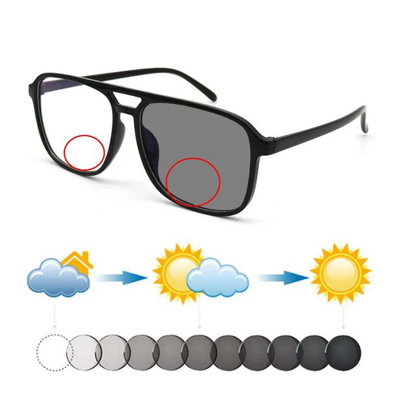 Оправа для очков TR90 для мужчин и женщин, фотохромные бифокальные очки для чтения, квадратные солнечные очки для дальнозоркости и дальнозоркости с двойной перемычкой