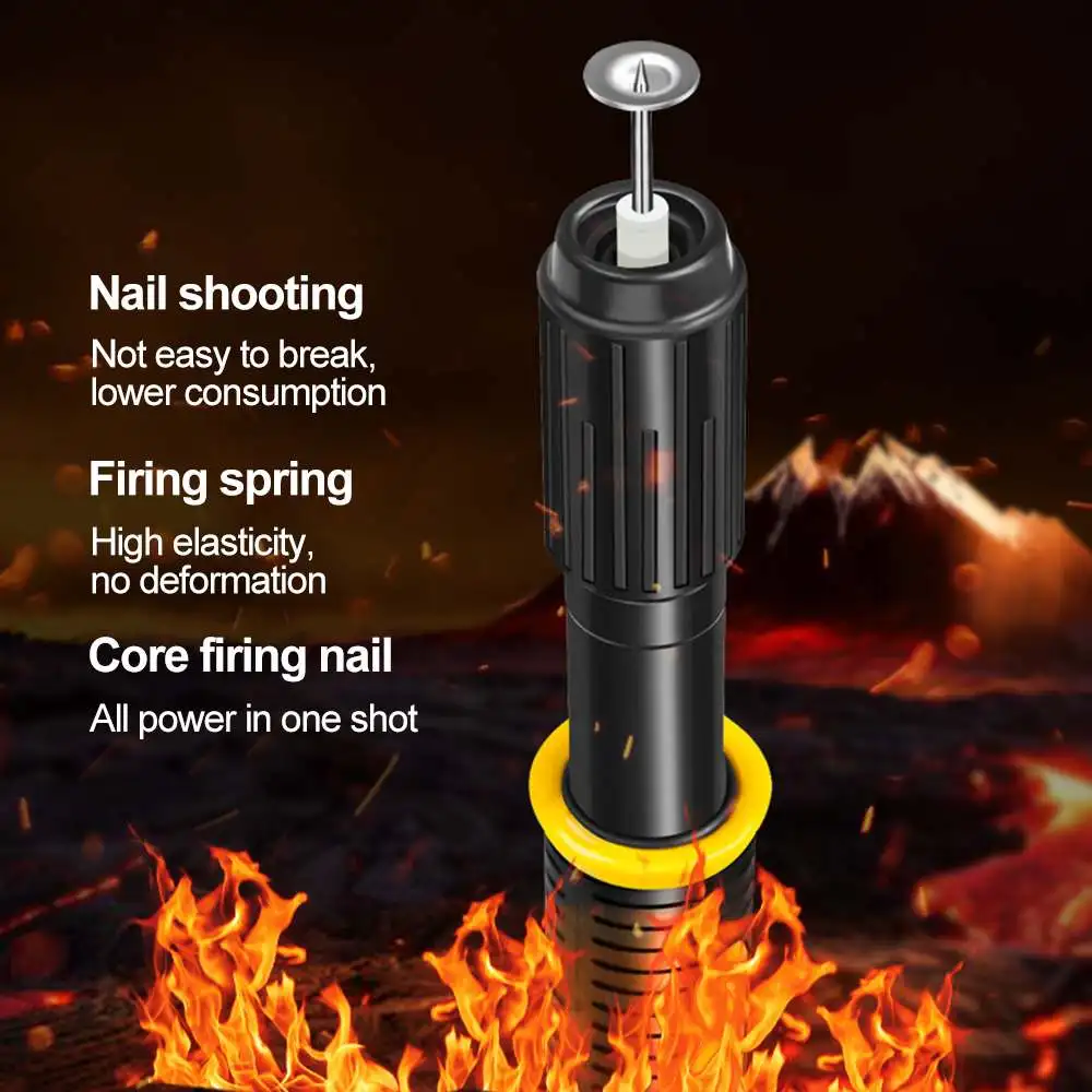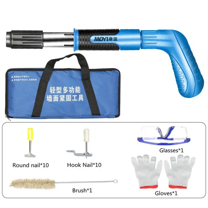 Характеристика:1. Качество. Пистолет-распылитель изготовлен из твердого металла, с нескользящей резиновой ручкой и противоскользящим щитом, взрывозащищенным корпусом, безопасным и прочным.2. Маленький и удобный. Светильник, малый размер, может работать одной рукой, оснащен сумкой для переноски, легко носить с машиной и гвоздями.3. Двойной глушитель. Более толстый стальной глушитель снижает уровень шума и безопасен, а условия строительства более комфортные и не будут беспокоить вашу семью или окружающих.4. Простота в использовании. Удерживайте муфту глушителя рукой и сжимайте ее несколько раз, чтобы удалить остатки для следующей операции5. Широкое использование. Подходит для стен из красного кирпича, бетонных стен, проволочных труб из алюминиевого сплава 8 мм и толстых деревянных досок. Нет большого количества пыли, энергосберегающих и экологически чистых