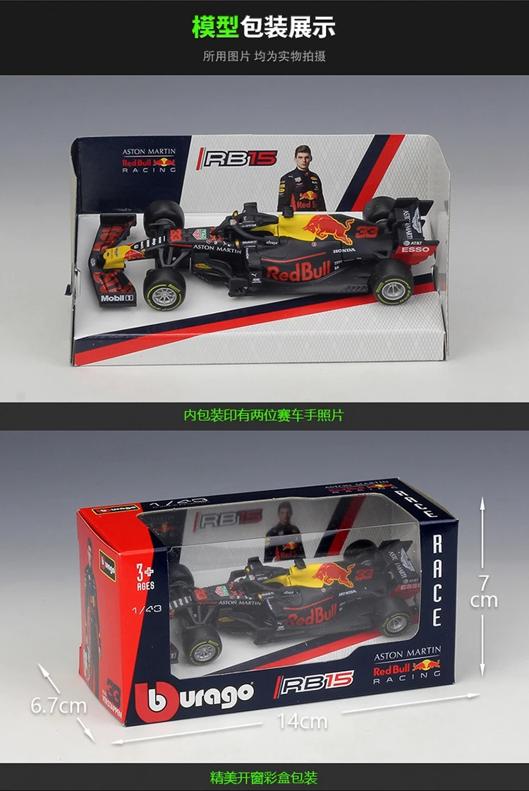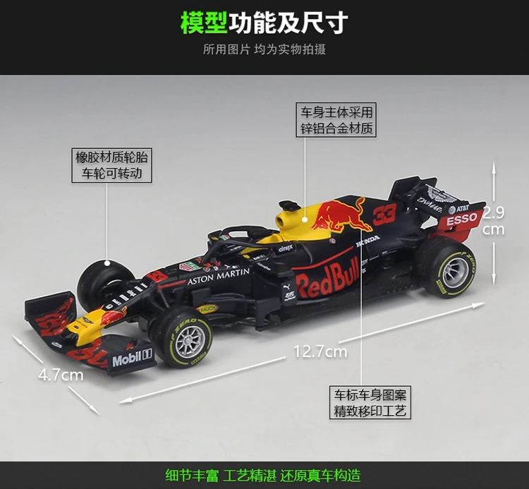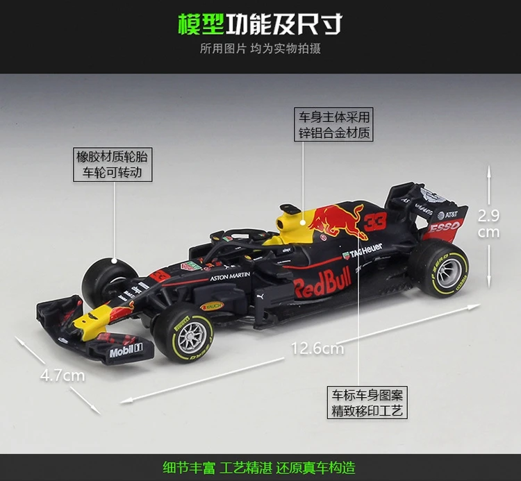 Модель гоночного автомобиля Bburago 1: 1 Ferrari F1 Red Bull Benz Formula One RB16B 33 из литого сплава, модель SF90 W10 RB15 RB13 SF71 SF16