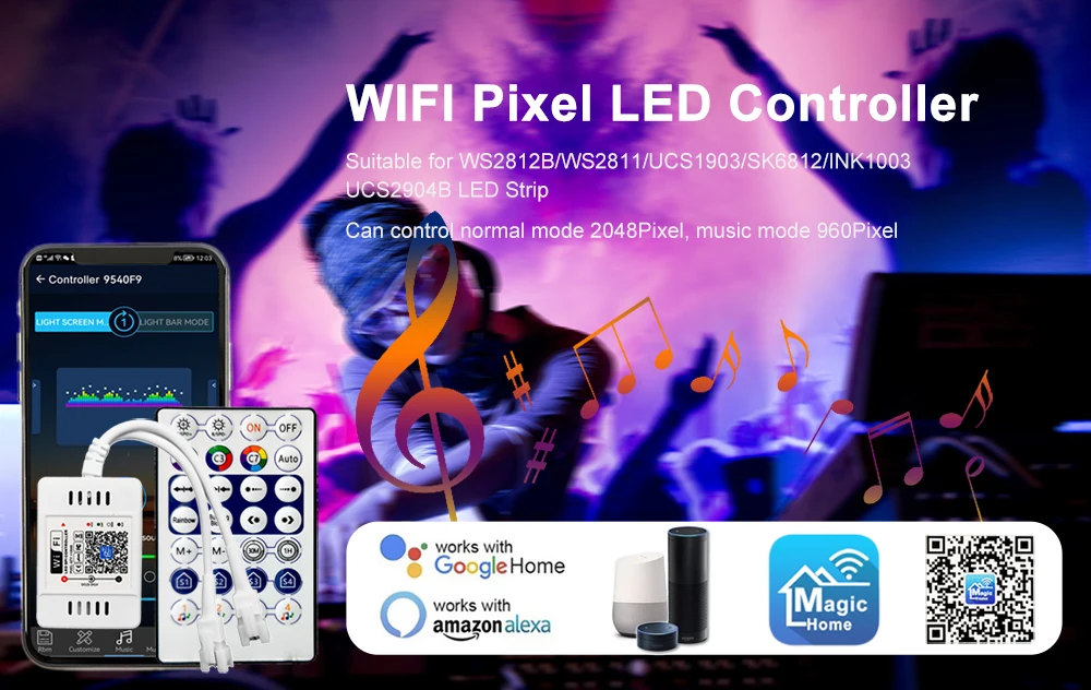 Светодиодный Wi-Fi контроллер WS2812B, волшебное Домашнее освещениеГолосовое управление Google Home для SK6812, адресная RGB Пиксельная лента
