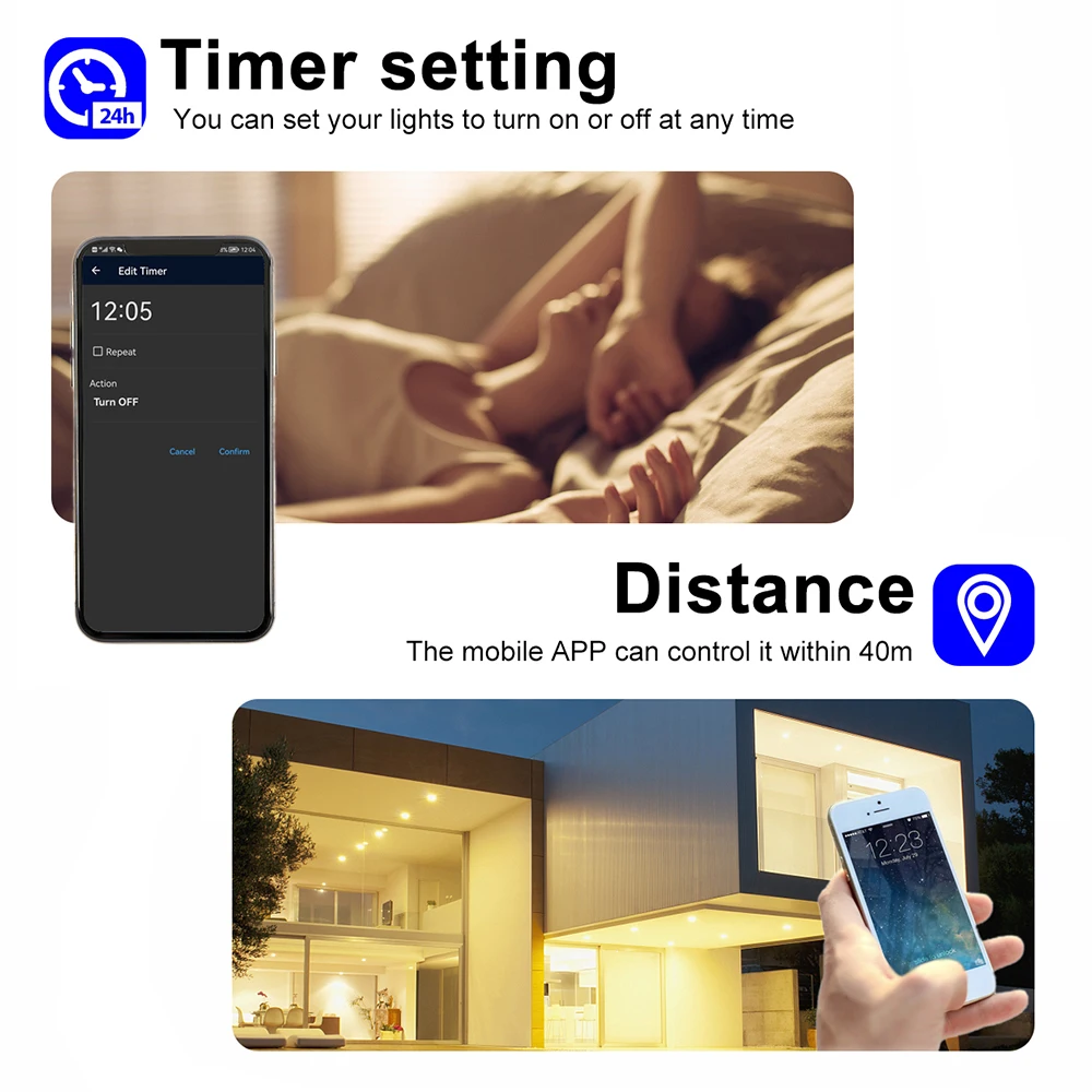 1. Мобильный телефон может использовать приложение для управления и регулировки цвета и яркости полосы светильник через WIFI
