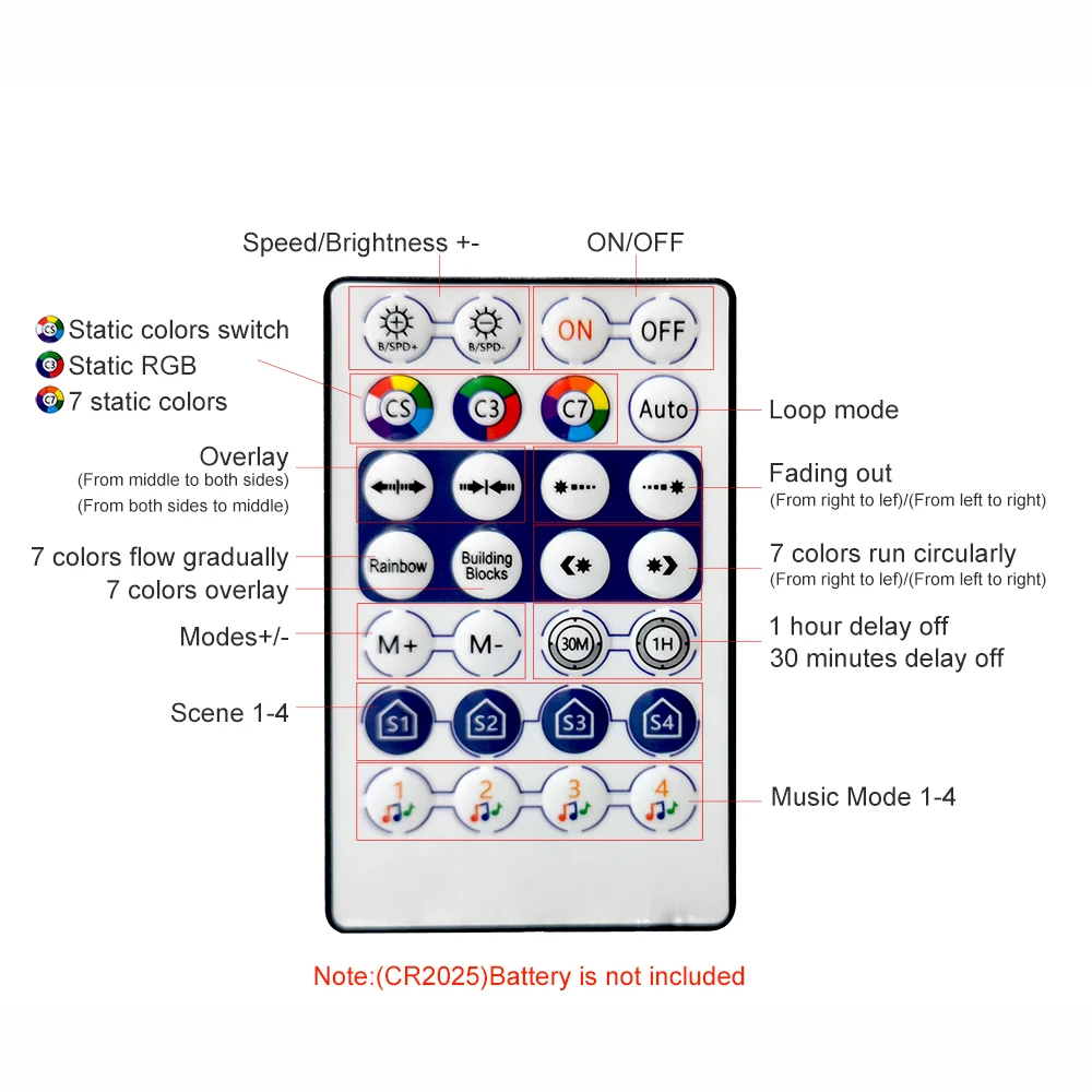 Функция: Режим сцен, Режим музыки, функция таймера, 100 моделей изменений, индивидуальные ваши собственные effects