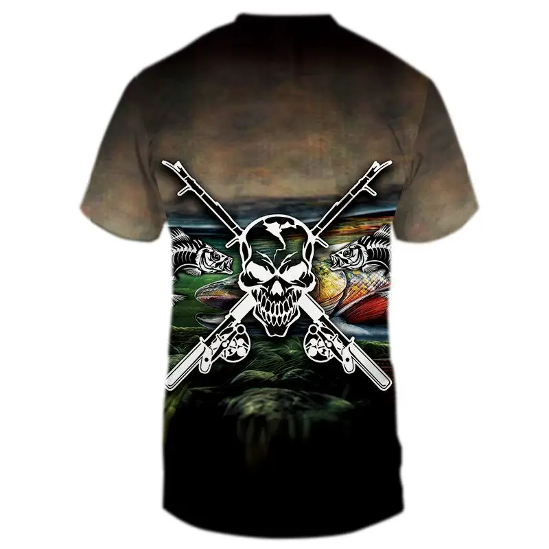 Мужская Уличная футболка с 3D-принтом рыбалка, повседневные коротки...
