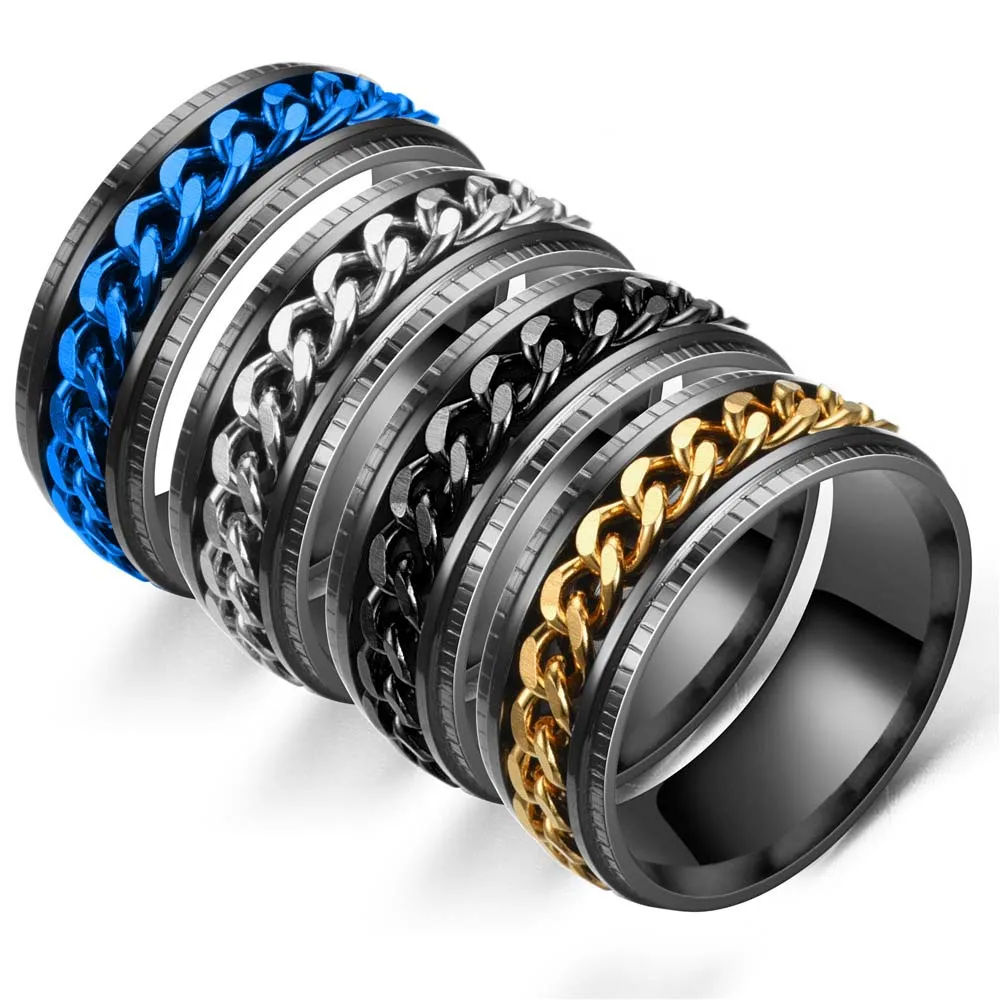 Мужское кольцо-цепочка из нержавеющей стали, вращающееся декомпресс...