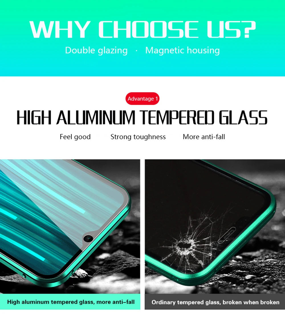 Металлический магнитный двусторонний стеклянный чехол для телефона ...