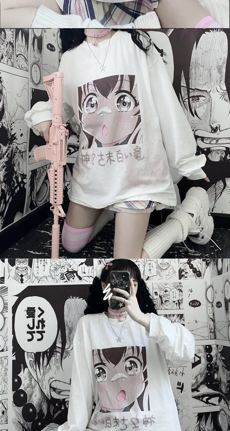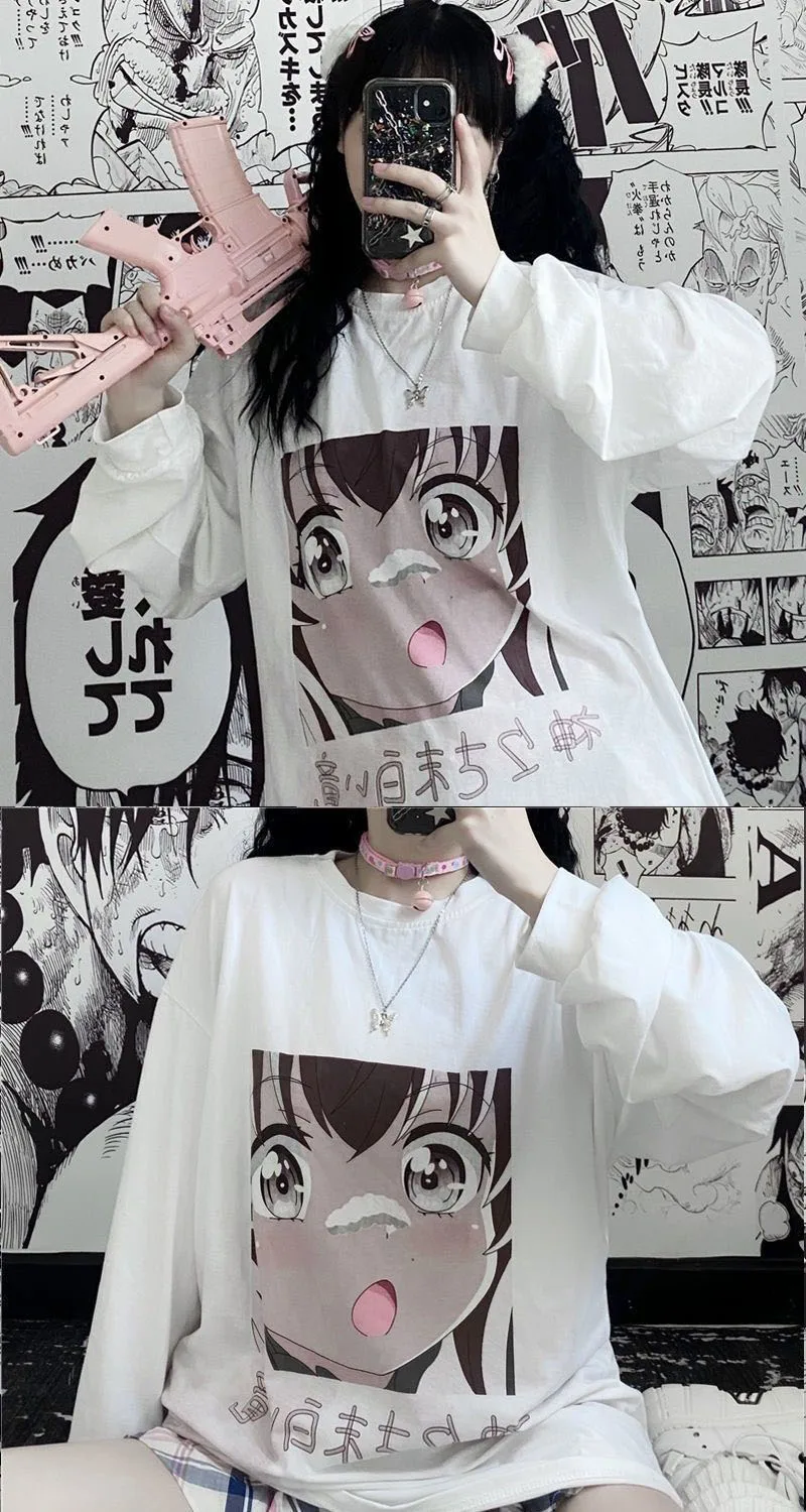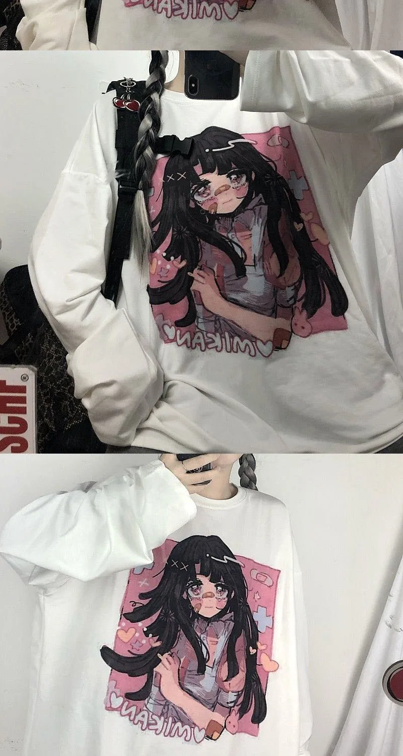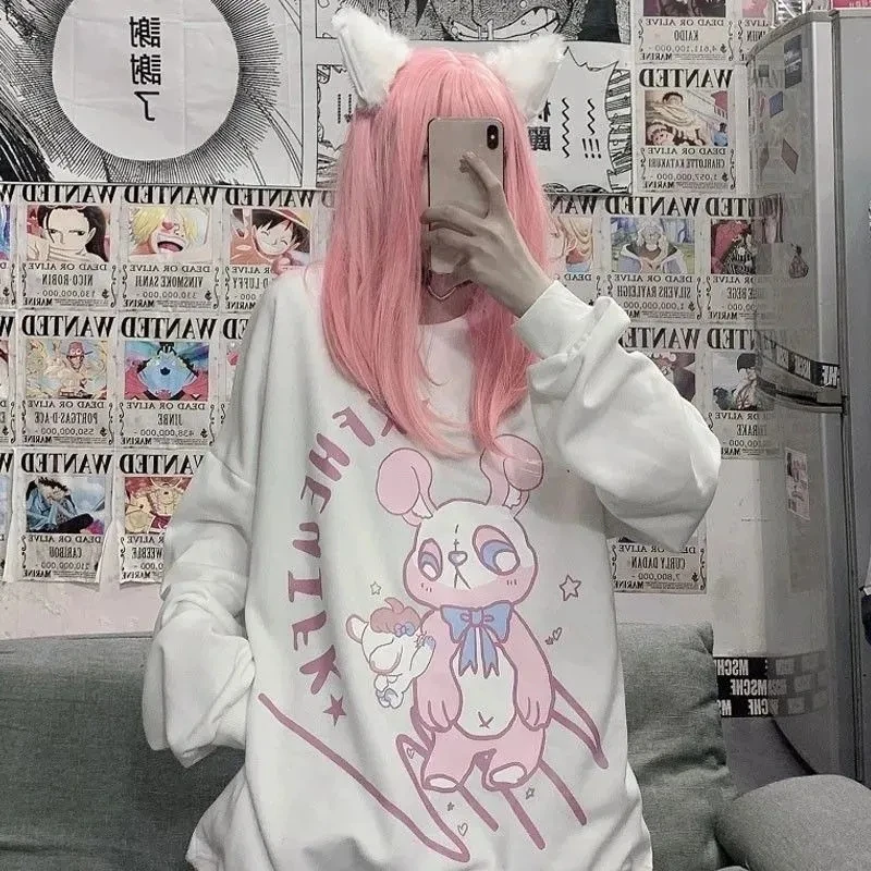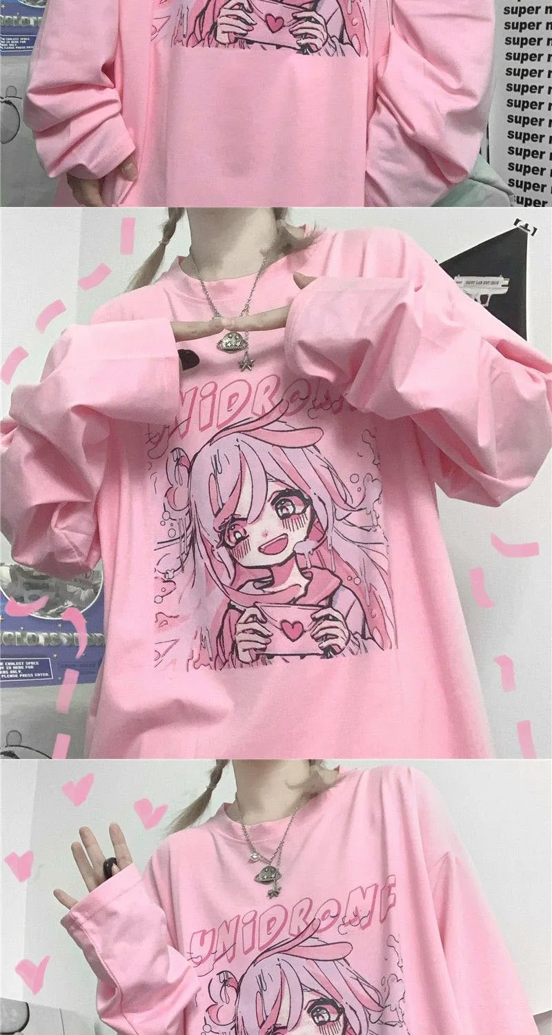 Женская футболка с длинным рукавом, осенняя Новинка, милая Студенческая одежда в Корейском стиле, свободный розовый топ с героями мультфильмов дикой милой девочки в стиле аниме