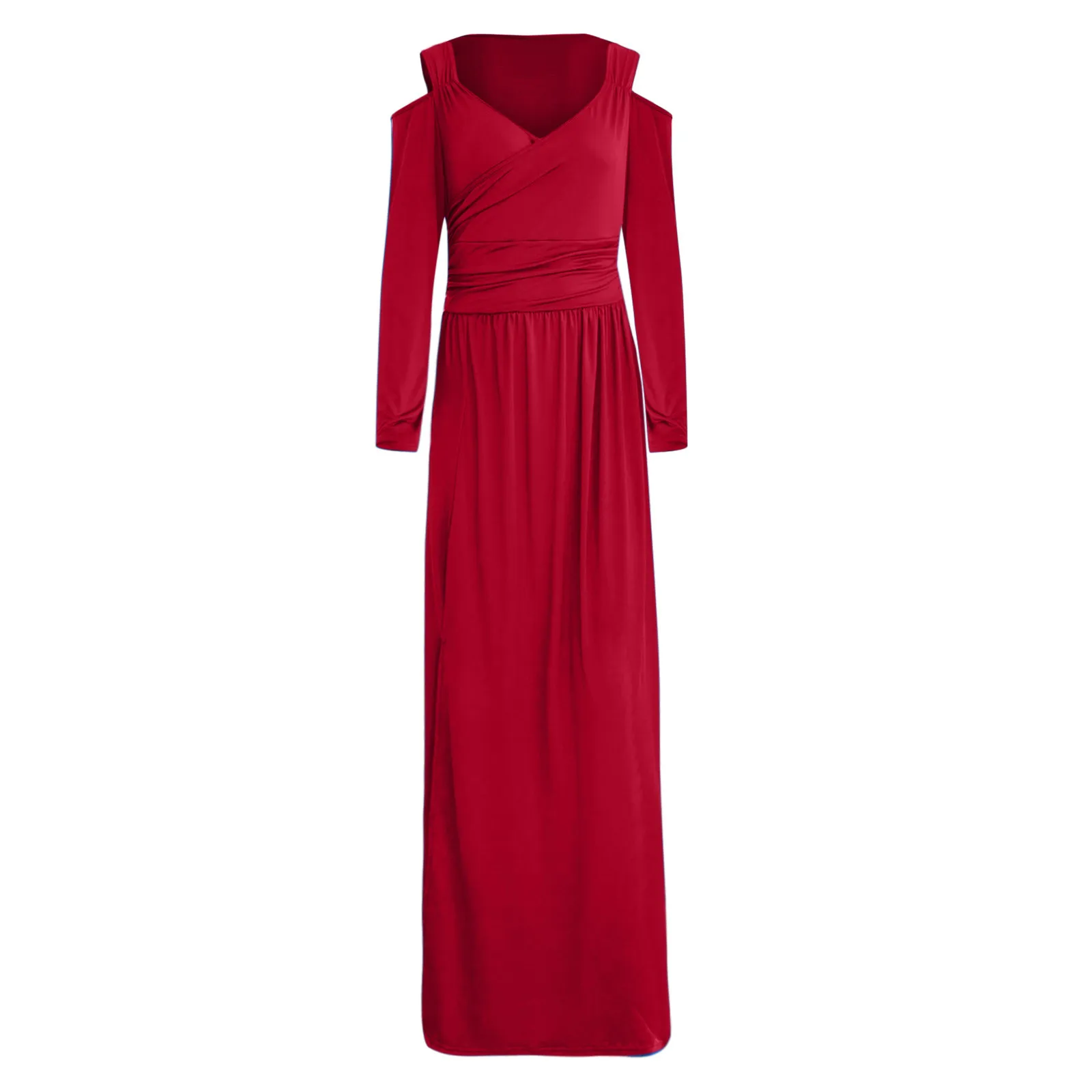 Женское длинное платье с открытыми плечами, V-образным вырезом и длинным рукавом