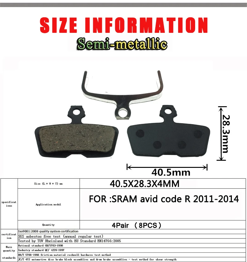Номер моделиSemi-metal (Resin/Organic) brake pads