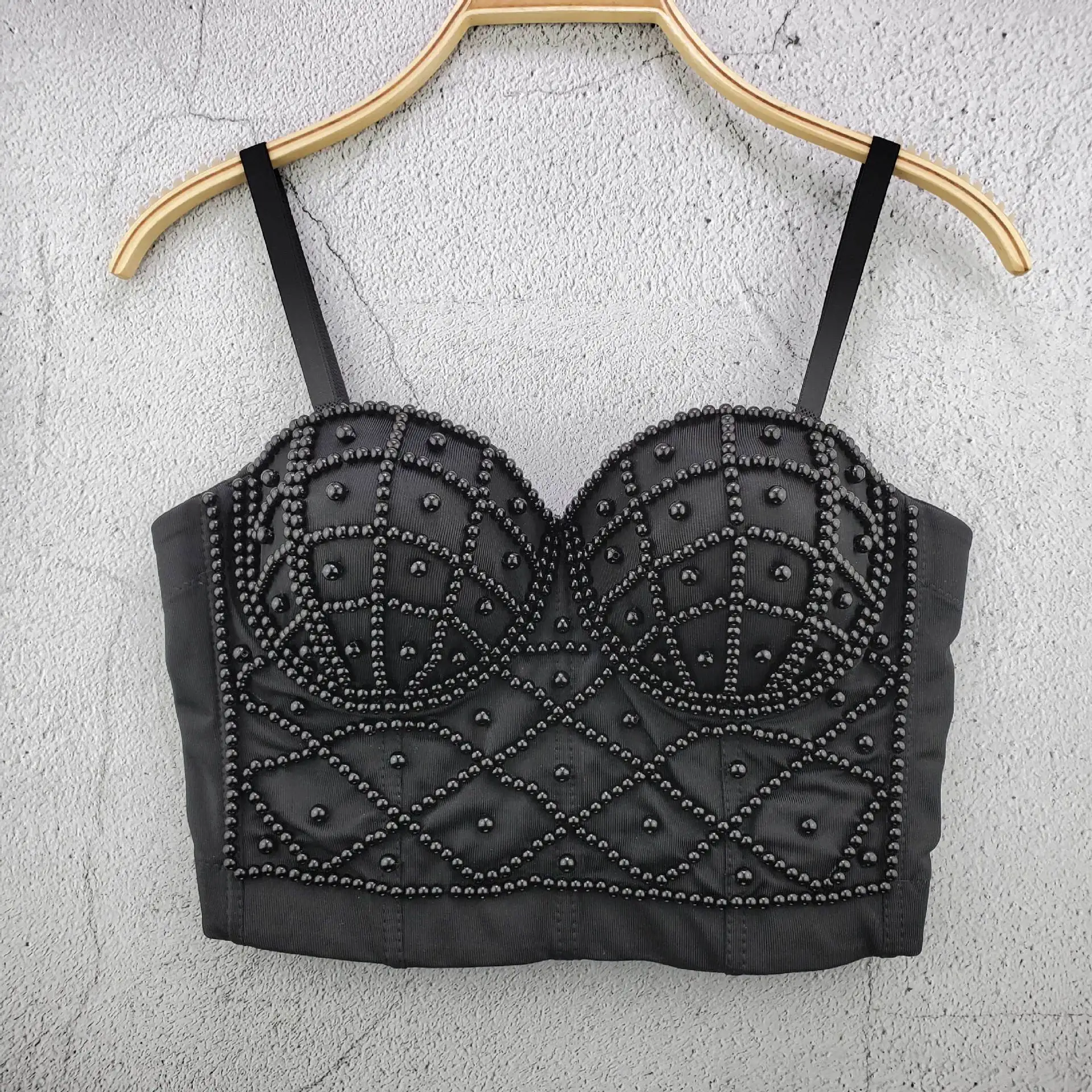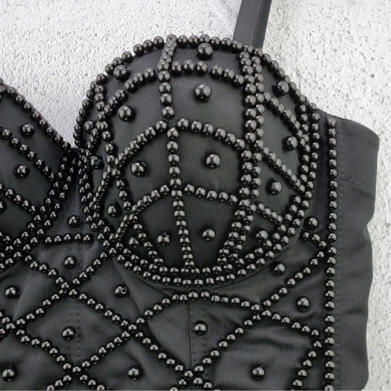 2021 Женские сексуальные эластичные Топы без бретелек с жемчугом и бисером, модные женские топы белого и черного цвета, женские летние майки