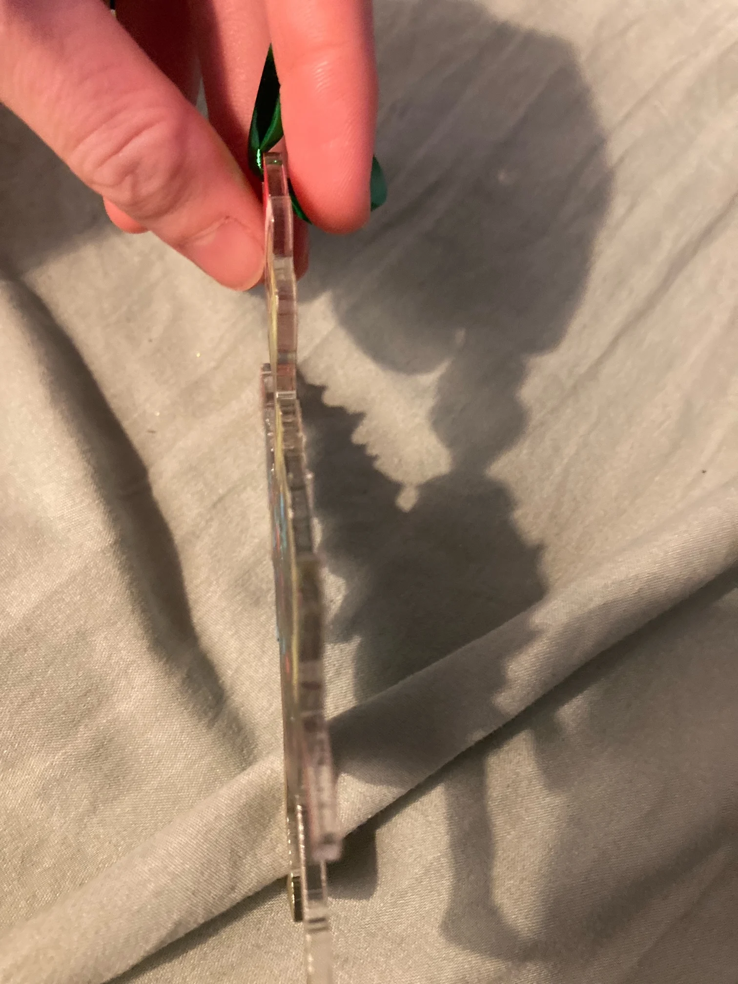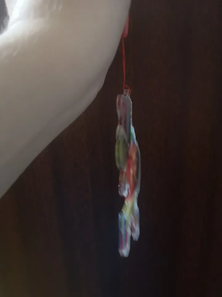 Классная подвеска, очень рада что приехала целая, хоть и упаковка просто пакет, наверное спасло что в общем пакете ехало. Надо бы лучше упаковывать такие хрупкие вещи. Но рада что ребенку к новому году успело, на ёлочку, большое спасибо.