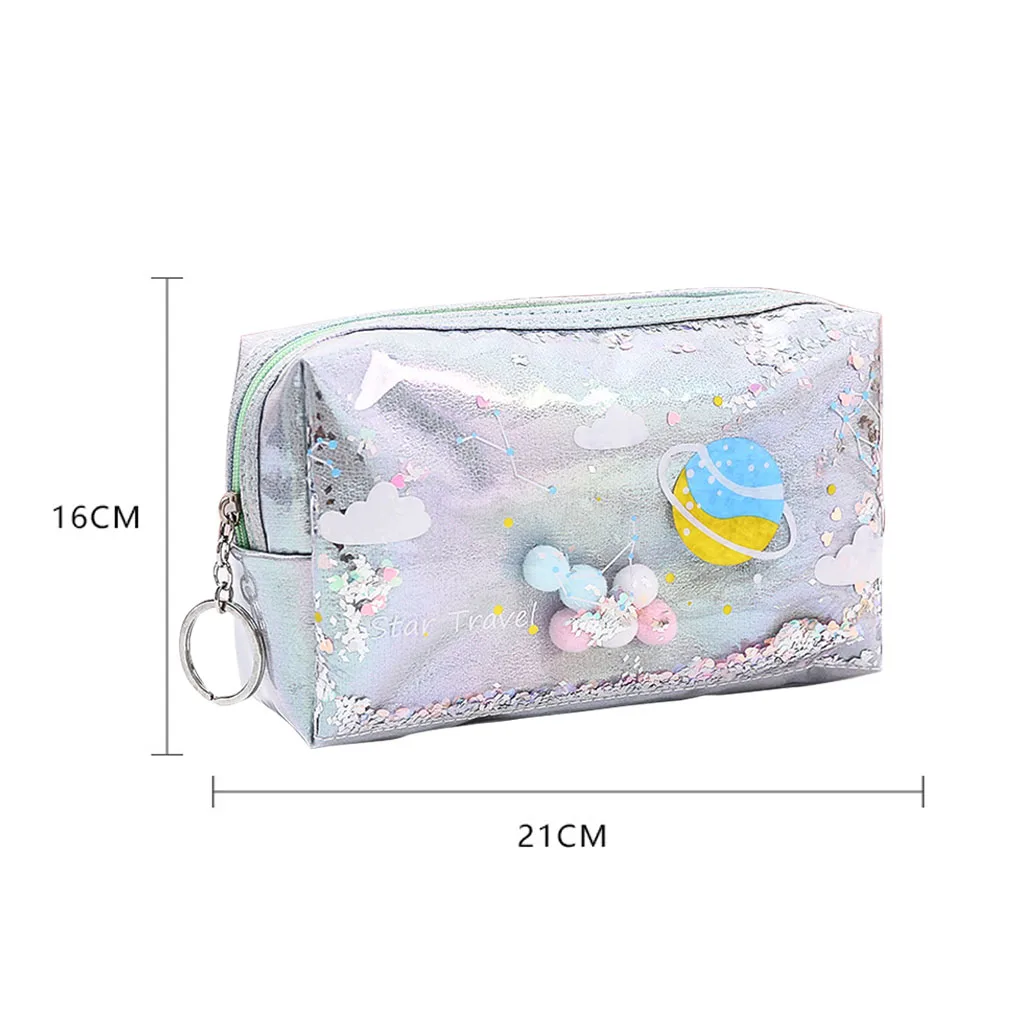 Голографический Чехол-карандаш на молнии, портативный кошелек для монет и ключей, косметичка, Полиуретановая сумка для хранения канцелярских принадлежностей