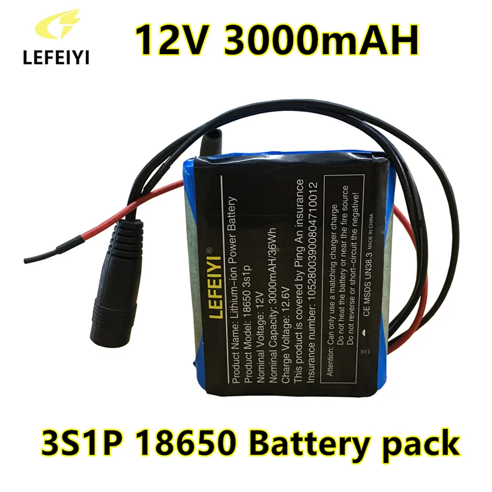 Комплект литиевых батарей 12 в 36 Втч с защитной пластиной 3000 мАч 3S1P 18650, аккумуляторная батарея для монитора ксеноновой лампы, бесплатная доставка