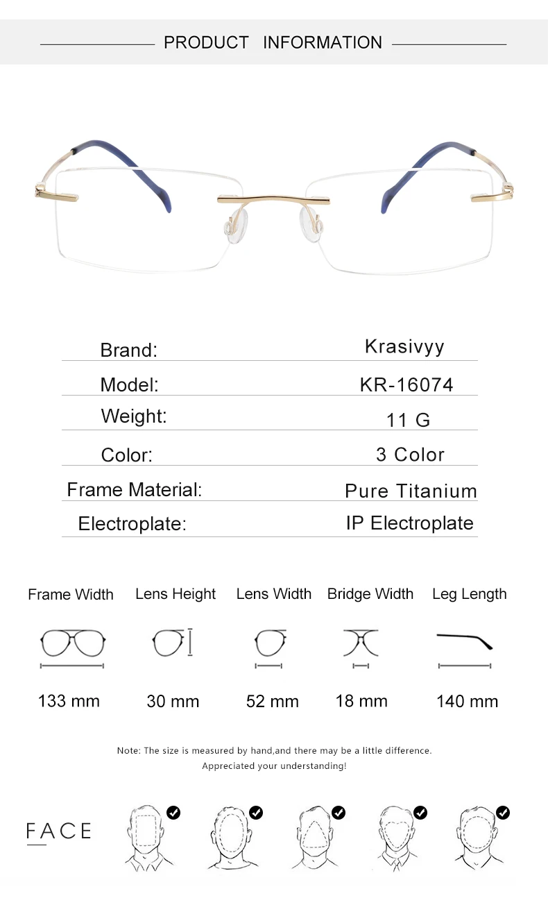 Оправа для очков Krasivyy без оправы для мужчин и женщин, новинка 2022, Рецептурные очки для близорукости, очки без оправы из чистого титана, квадратные оптические очки без оправы