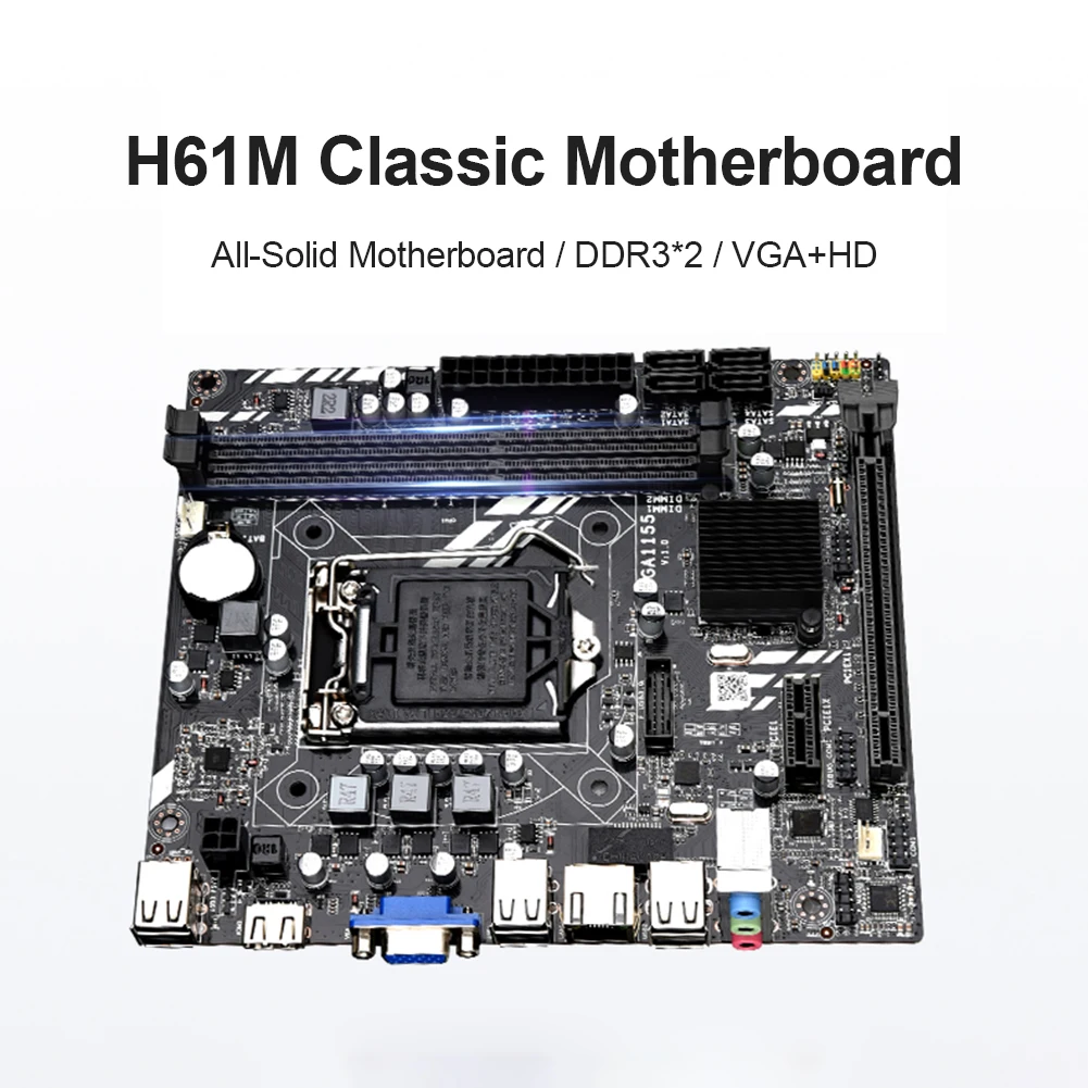 H61M DDR3 USB2.0 Настольная компьютерная материнская плата PCI-E 8X слот M-ATX LGA1155 Шахтерская плата для Intel Core i7/i5/i3/Pentium/Celeron VGA + HDMI-совместимый аксессуар