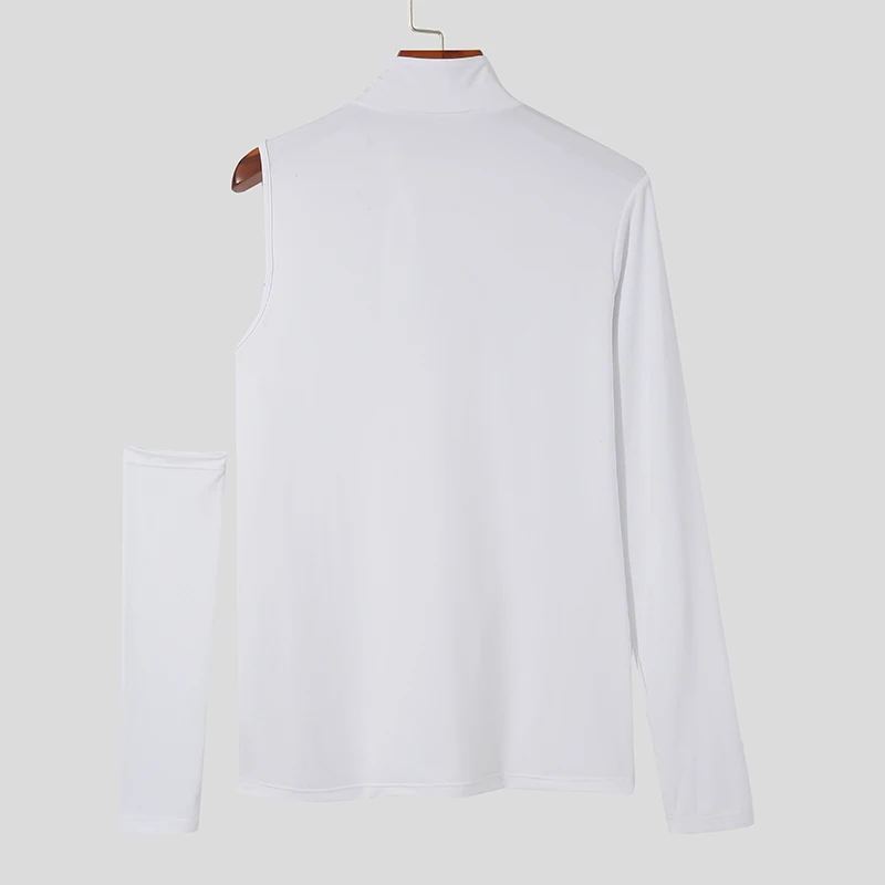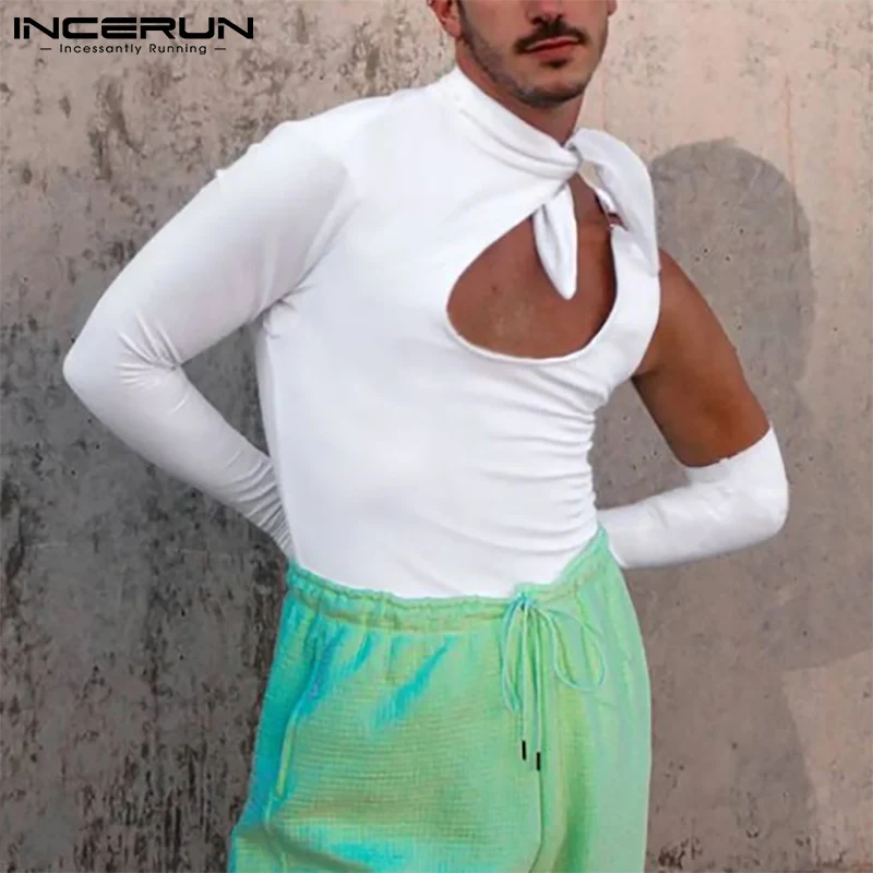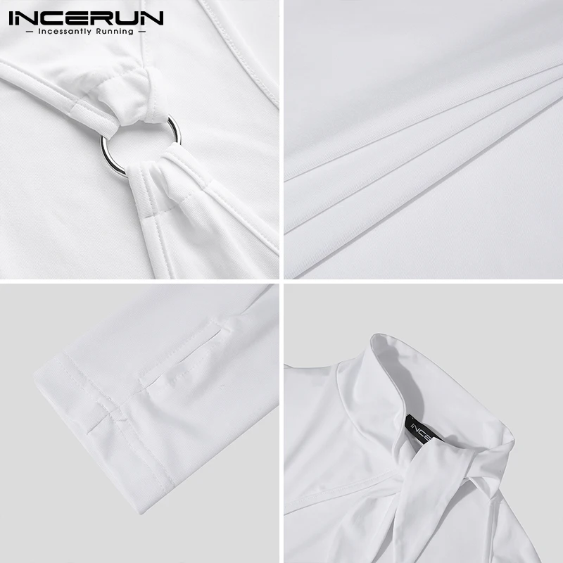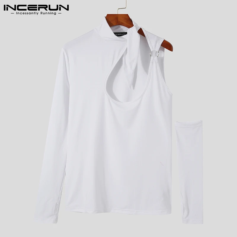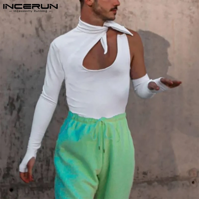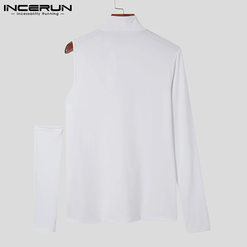 Футболка INCERUN мужская с высоким воротником, однотонная Повседневная рубашка с длинным рукавом, асимметричная уличная одежда с вырезами, уютная одежда, 7, 2022