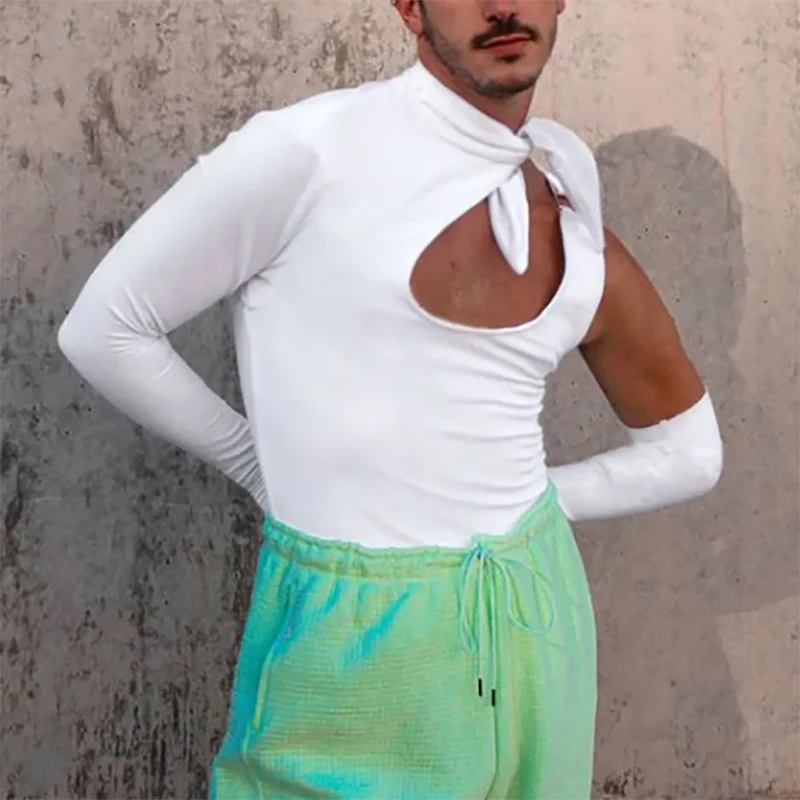 Мужская сетчатая прозрачная рубашка с длинным рукавом и поясом, 2022