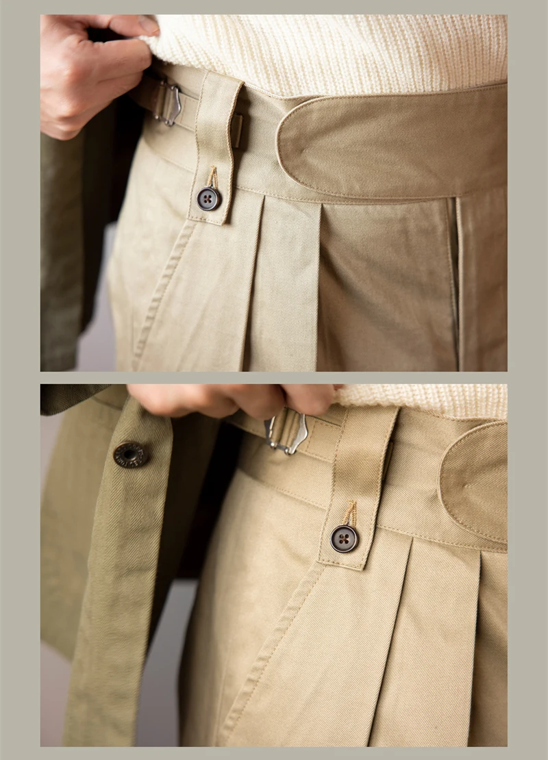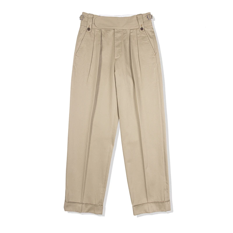 ⦁ Широкий/прямой крой⦁ С высокой посадкойChino Чино из 100% хлопкаPockets боковые карманы для входаWelпришитые сзади карманы с застежкой на пуговицыMetal металлические пряжки на талии для дополнительной регулировки⦁ Пуговица застежкаWear износостойкая полоска, ПРИШИТАЯ снизу