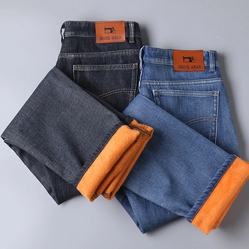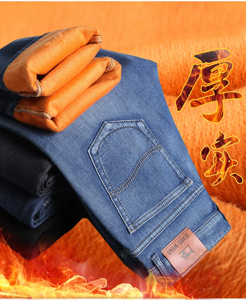 Мужские повседневные джинсы, теплые флисовые хлопковые брендовые об...