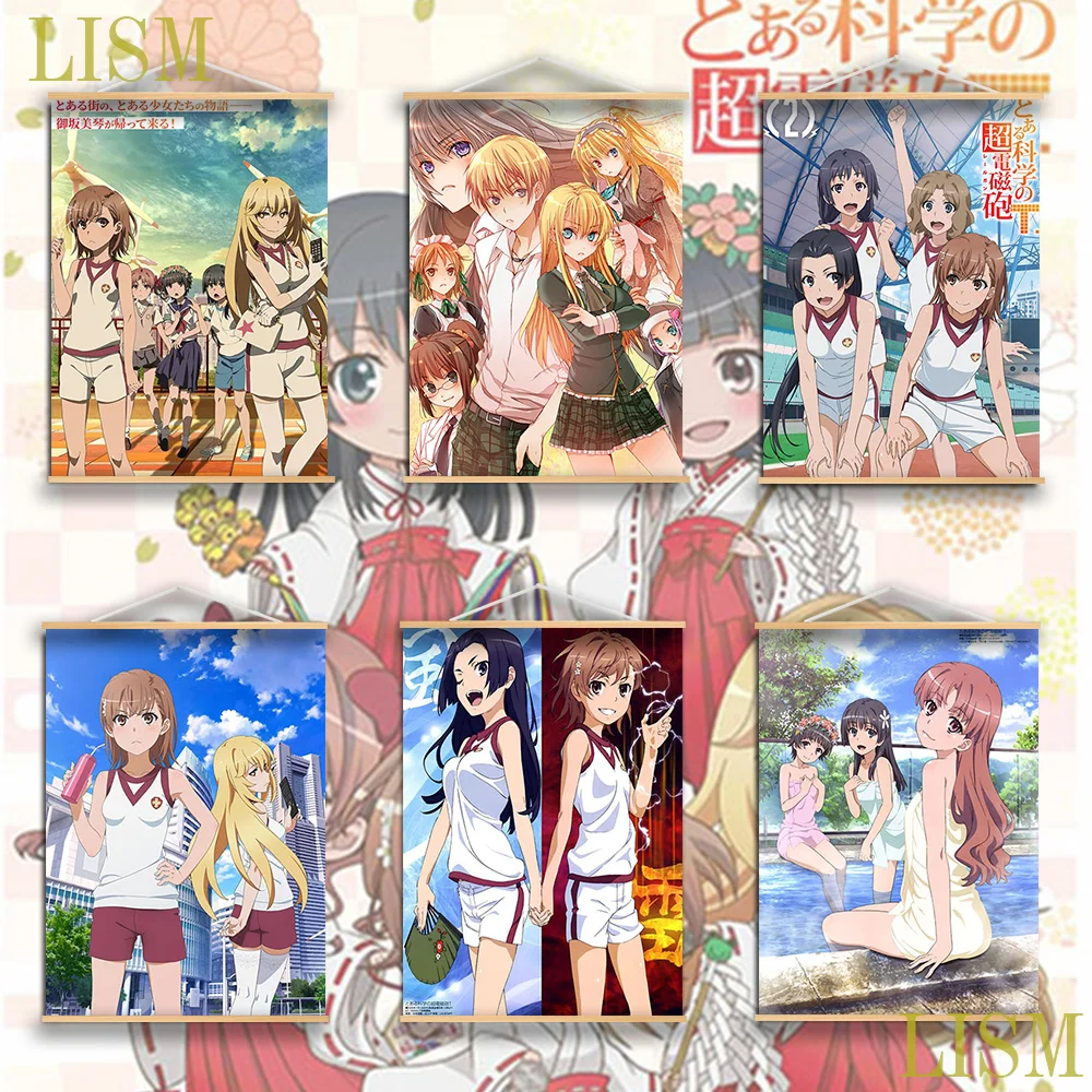 Определенное научное железнодорожное ружье до АРУ кагаку нет железнодорожного ружья T Misaka Mikoto Shokuhou Аниме Манга настенный постер из массива дерева свиток холст