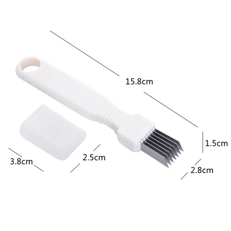 100% новый и высокое качество Идеально подходит для резки зеленого лука, весеннего лука, овощей и т. Д. Изготовлен из прочного материала, вам лучше очистить его и высушить, чтобы хорошо поддерживать. Будьте осторожны, чтобы использовать его, возьмите пластиковую ручку, чтобы разрезать еду. Простой в использовании, вы можете вырезать различные формы, которые вам нравятся. Костюмы для кухни, ресторана, отеля. Материал: стальная сталь Размер: 16*2,8*1,5 см Цвет: белый (показан как на картинке) Можно легко разрезать лук на ломтики