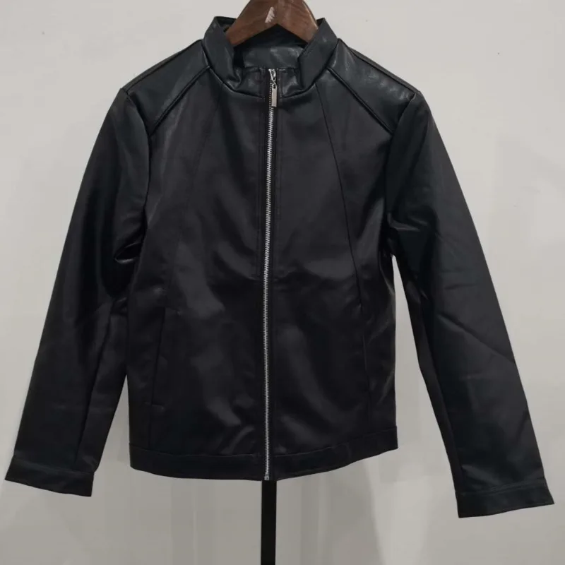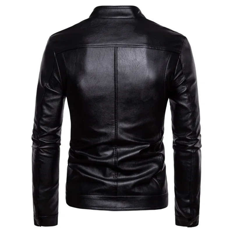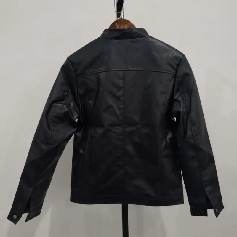 Куртка мужская из ПУ кожи с эффектом потертости и воротником-стойкой