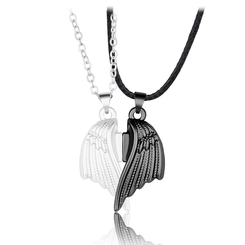 B36D 2 шт. цепочка с подвеской в виде ангела, демона, крыла, звеньев, ожерелье с магнитами в форме сердца, парная Магнитная легкая Подвеска для влюбленных