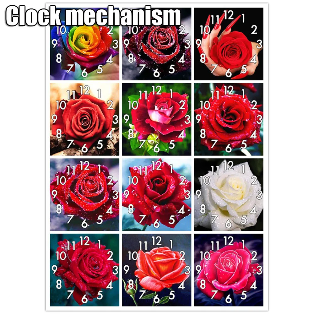 Полный набор для алмазной живописи вышивка крестиком Лепестки розы с механизмом часов мозаика 5D Сделай Сам квадратная круглая вышивка подарок