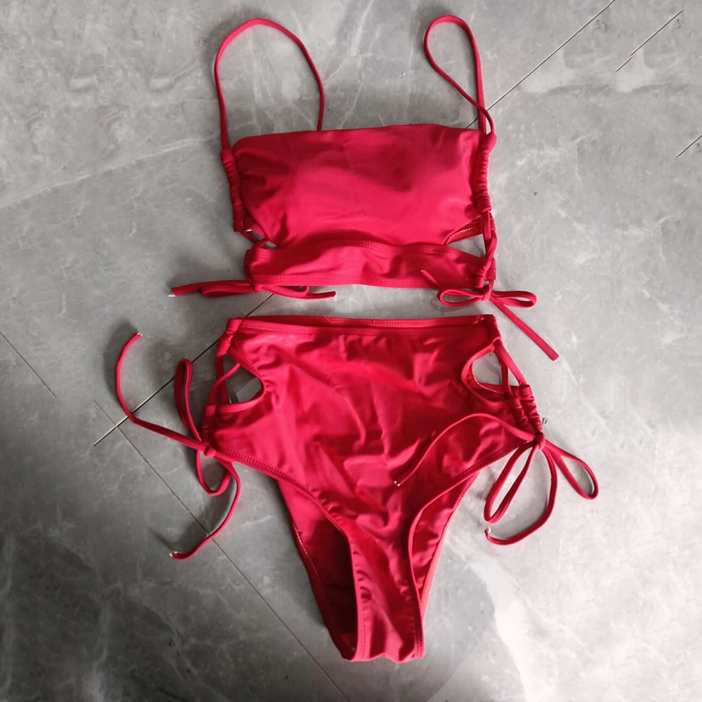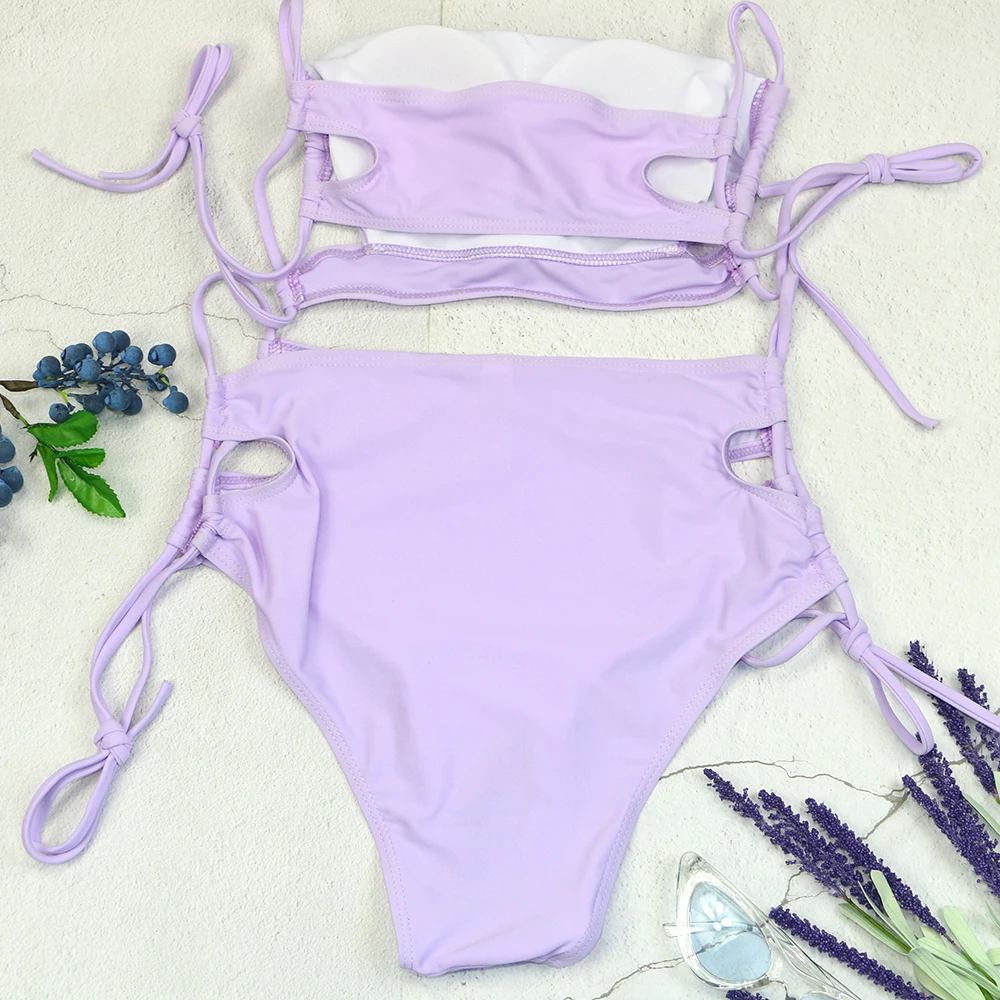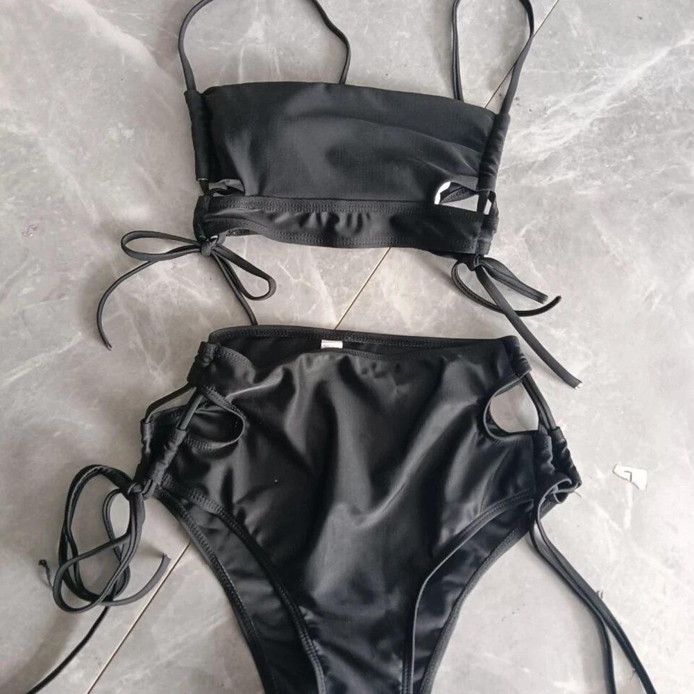 Женский раздельный купальник пуш-ап, однотонный раздельный купальник с высокой талией, пляжная одежда, лето 2022