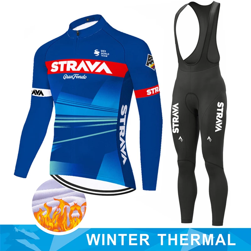 Зима 2022, теплое флисовое Велосипедное Джерси STRAVA Team, велосипедная одежда, Теплая мужская рубашка с длинным рукавом, велосипедные шорты с гелевыми подушечками