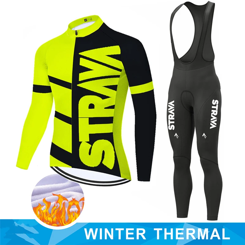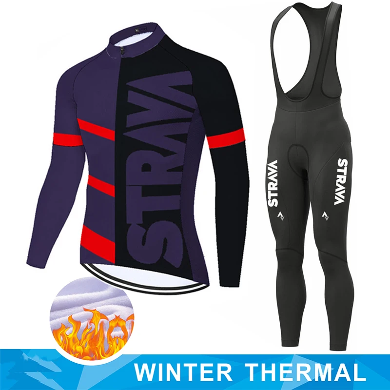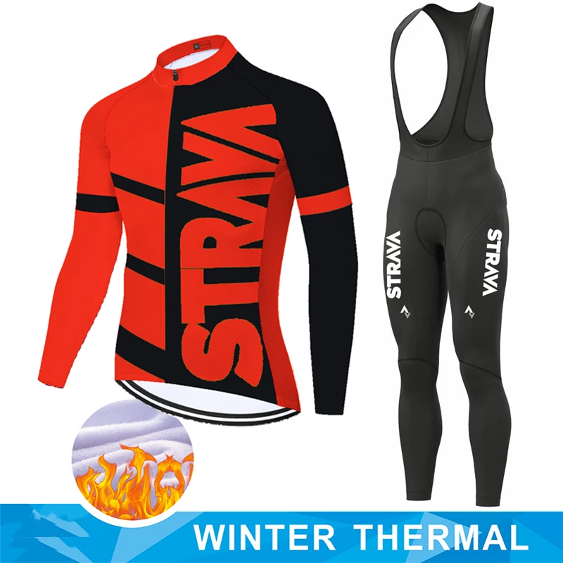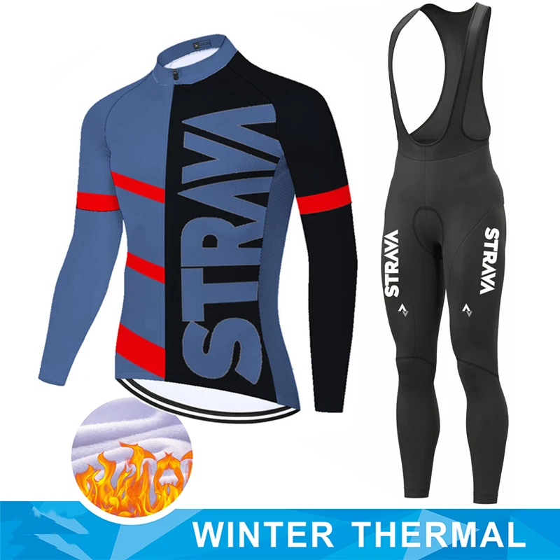 Зимний теплый флисовый комплект трикотажных изделий STRAVA для езды на велосипеде, костюм для езды на велосипеде, одежда для езды на велосипеде Ropa Ciclismo