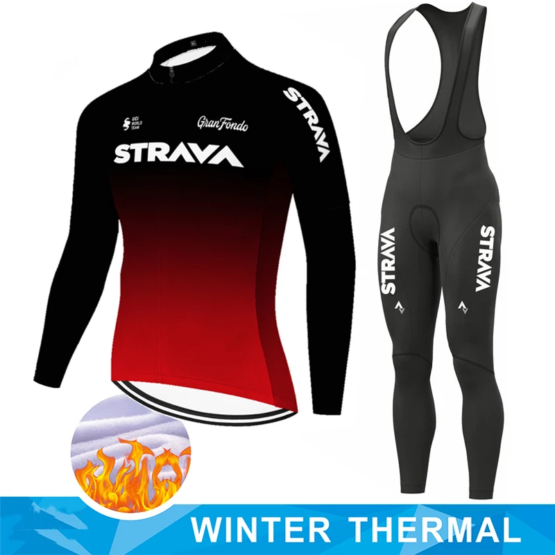 Мужская велосипедная Униформа STRAVA, комплект из Джерси 2022, комбинезоны, утепленная флисовая велосипедная одежда, зимняя командная велосипедная одежда Ropa Ciclismo