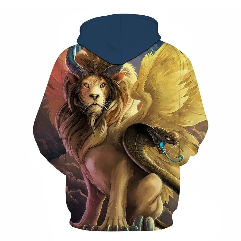Толстовка мужская с 3D-принтом льва, Свитшот оверсайз для мужчин и ...