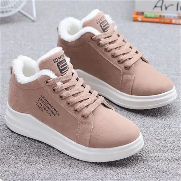 Зимние теплые женские кроссовки на вулканизированной подошве с мехом и плюшевой подкладкой, повседневная обувь на шнуровке, модные кроссовки на платформе, женские зимние ботинки, Zapatillas Mujer