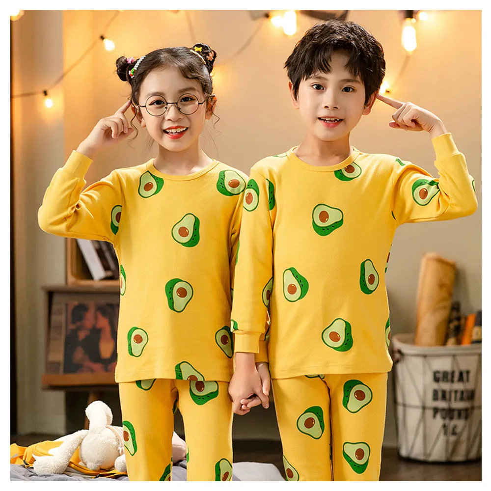 Весенне-осенние пижамные комплекты с длинными рукавами для мальчиков и девочек подходит для детей 2, 3, 4, 5, 6, 7, 8 От 9 до 14 лет
