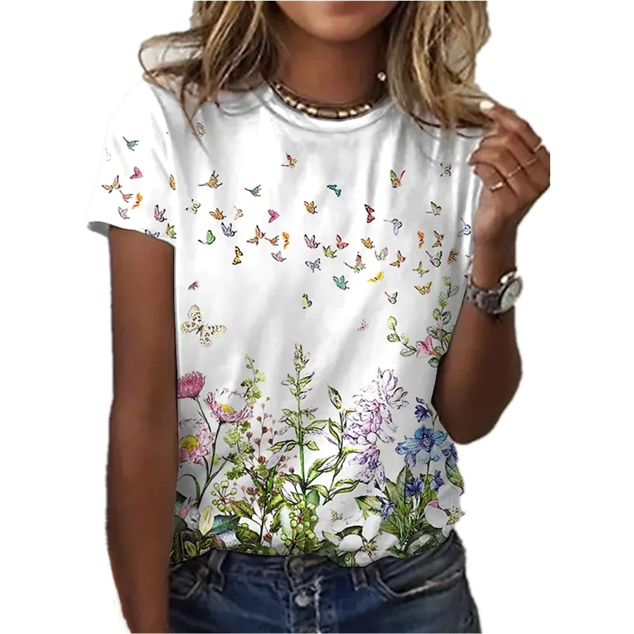 Цветная Женская одежда с рисунком одуванчика, футболка с коротким рукавом, уличная одежда, Женский тканевый Топ, футболка оверсайз для женщин