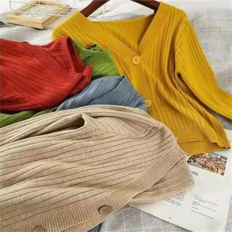 Женский трикотажный кардиган с длинным рукавом, на пуговицах