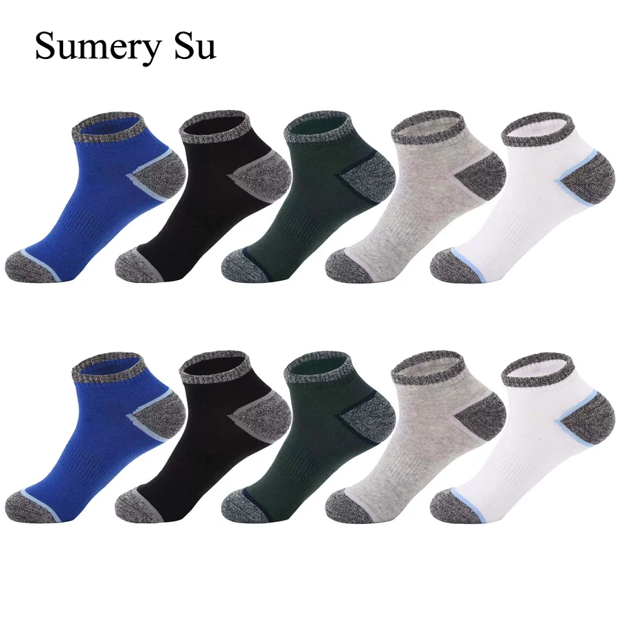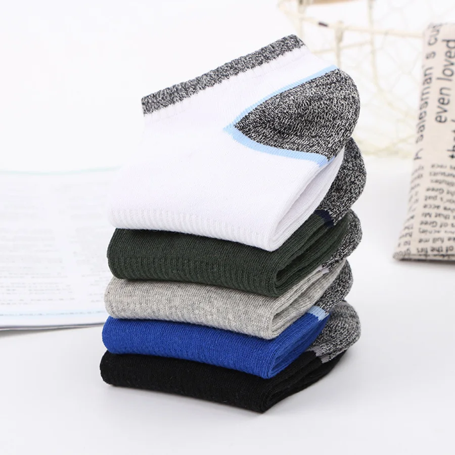 Носки мужские спортивные до щиколотки, хлопковые короткие дышащие, для бега, атлетики, летние, в японском и корейском стиле, 5 партЛот, летние