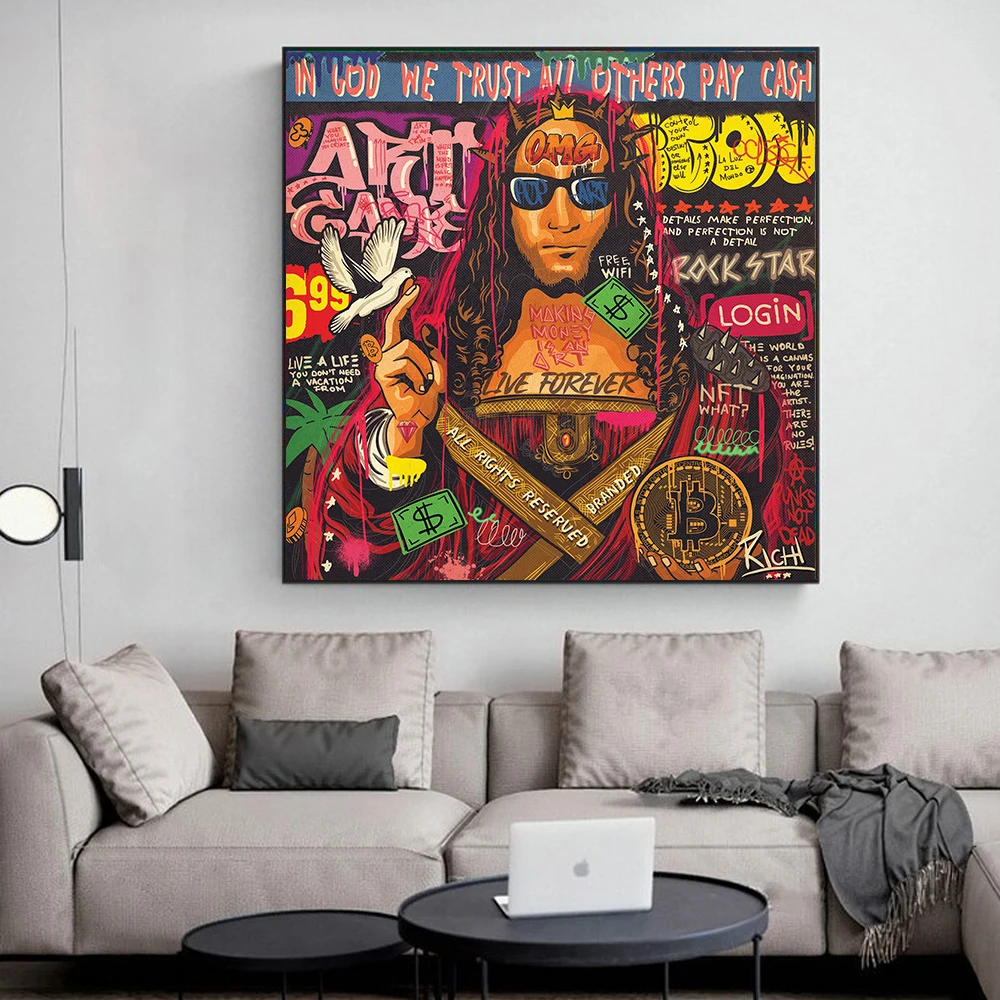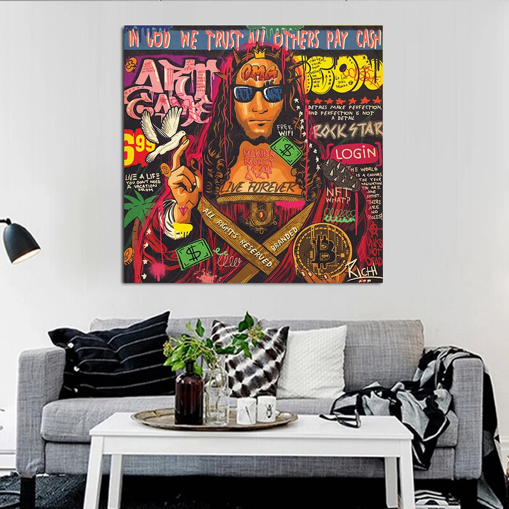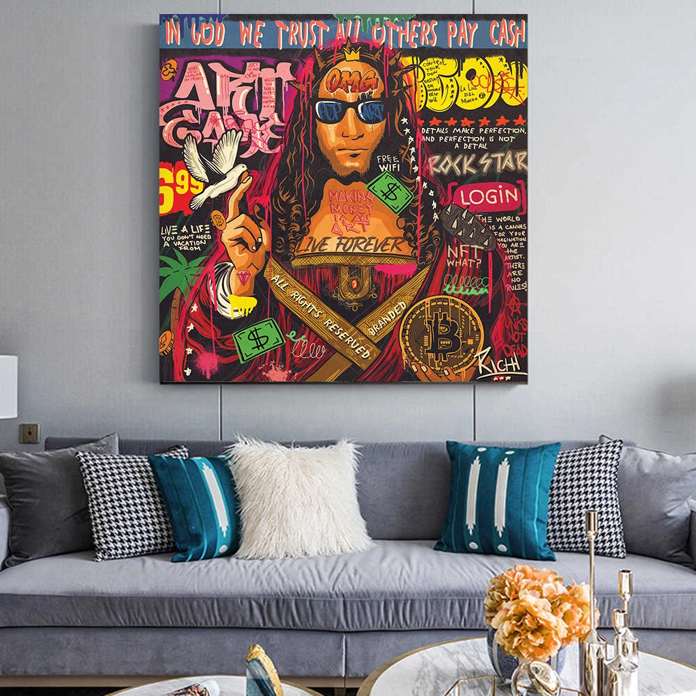 Граффити Сальватор Мунди Леонардо да Винчи постер и печать биткоинов Картина на холсте HD картина для домашнего декора комнаты