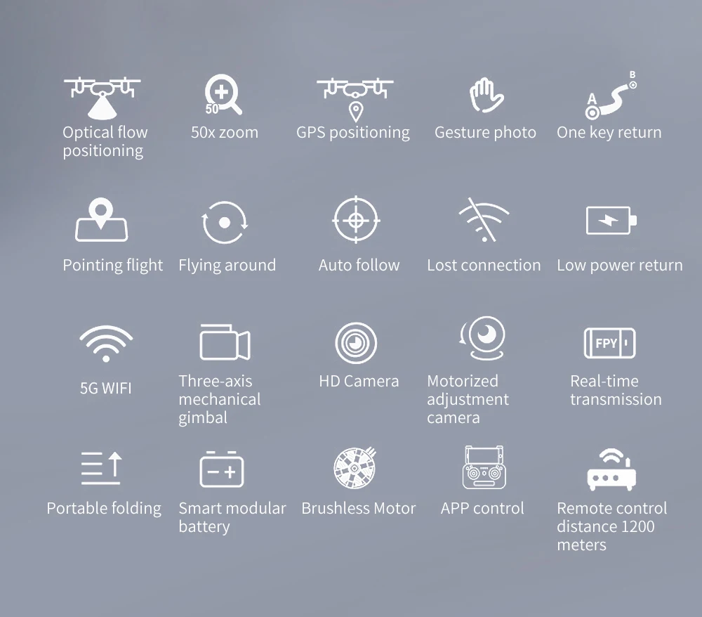 Название: Дрон SG908Датчик давления: установка высотыМотор: 1806 бесщеточный моторМощность двигателя: 1700/квРегулировка электрической мощности: 30AСпособ приема WIFI для смартфона: 5G WIFIШарнир: трехосевая Механическая самостабилизирующая головкаОбъектив: самостабилизирующий электронный анти-Вибрационный объективМакс дистанционный пульт Размер зажима для телефона: 5,5 дюймовАккумулятор пульта дистанционного управления: 1,5 V AA батарея * 4 (не прилагаются)Аккумулятор дрона: 7,6 В 3400 мАчРасстояние управления (свободное взаимодействие и отсутствие окклюзии):1200 мРасстояние передачи изображения Wi-Fi (свободное взаимодействие и отсутствие окклюзии): около 500-800 мВремя полета: около 26 минутВремя зарядки: около 6 часовUsb-зарядка: 5 ВРазмер изделия: разворачивается 32x40x8 см, складывается 18x9x8cmВес дрона: 534 гПиксель: 4K HD камераНазвание приложения: HFun PIus(IOS Android)Карданный угол (диапазон регулировки угла)110 ° автоматическое восстановление (вертикальное)65 ° автоматическое восстановление (сбоку)45 ° автоматическое восстановление (по горизонтали)Объектив камеры: регулируемая камера с помощью передатчика, 110 °GPS следуй за мной: 30 мИзображение Следуйте за мной: 1-5 мФокусное расстояние: 50xРучная съемка жестов/видеозапись: 1-5 мФронтальная камера:Разрешение видео: 2048*1080(TF)Режим SD: 1208*720 (приложение)Режим HD: 2048*1080 (приложение)Разрешение фото: 4096*3072P(TF) 4096*3072P (приложение)Нижняя Камера:Разрешение видео: 1280*720PРазрешение фото: 1280*720PЧастота кадров: 25 кадров в секундуПосылка включает в себя:1 x Квадрокоптер SG908 RC1 х пульт дистанционного управления1x2x3 7,6 V 3400mAh Lipo батарея, которую вы выбираете4 запасных пропеллера1 х USB кабель для зарядки1 отвертка8 x запасной винт1 x Руководство пользователя