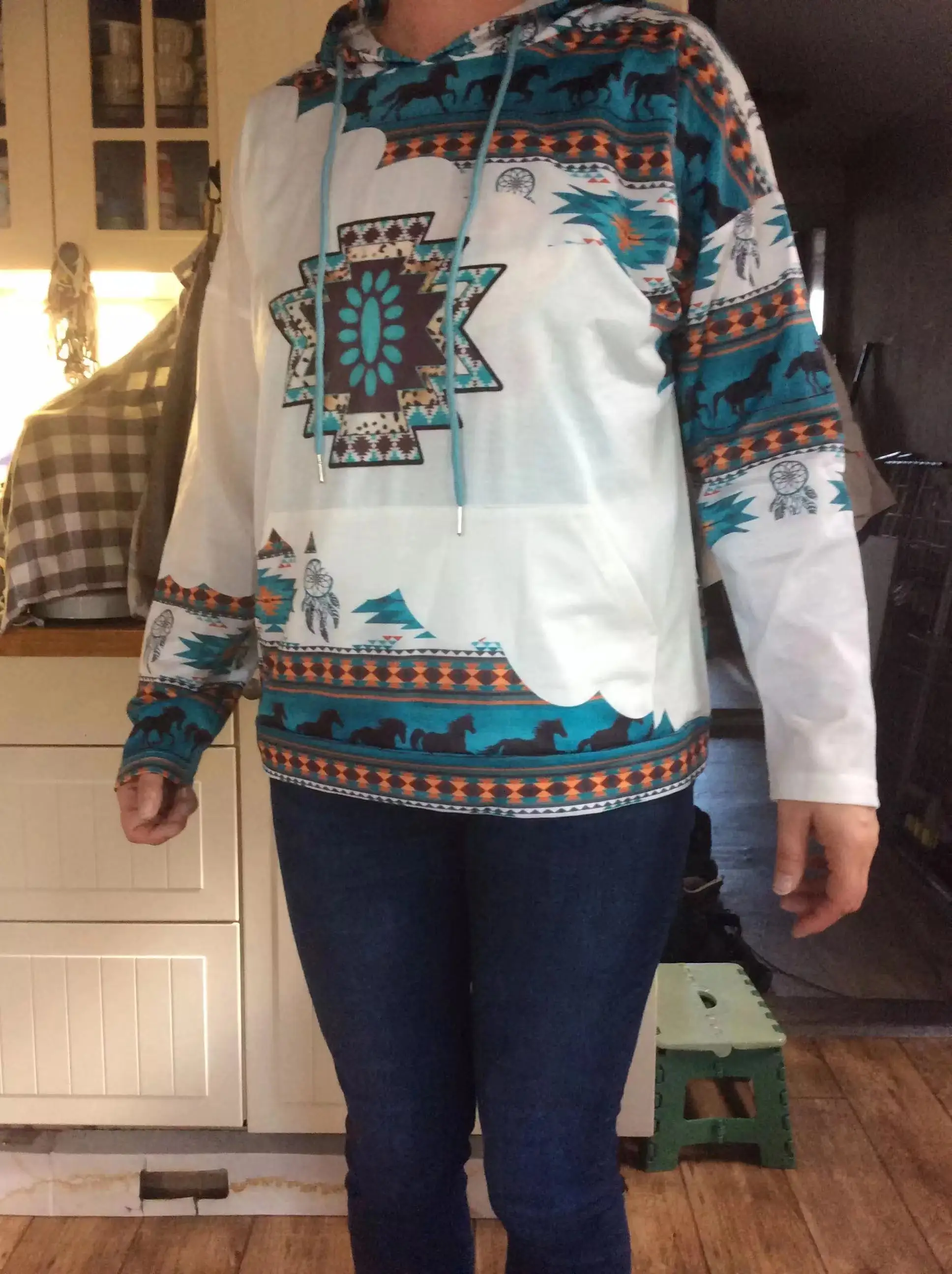 Женская толстовка с длинным рукавом, Повседневный пуловер большого размера с винтажным фольклорным принтом, осень 2021