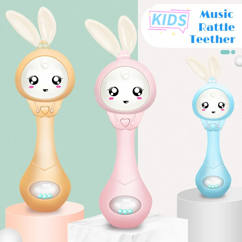-Название продукта: детская музыкальная мигающая погремушка-прорезыватель, игрушки с кроличьими ручными колокольчиками, Мобильная детская пустышка, рыдает, Новорожденные, Ранние развивающие игрушки 0-12 м