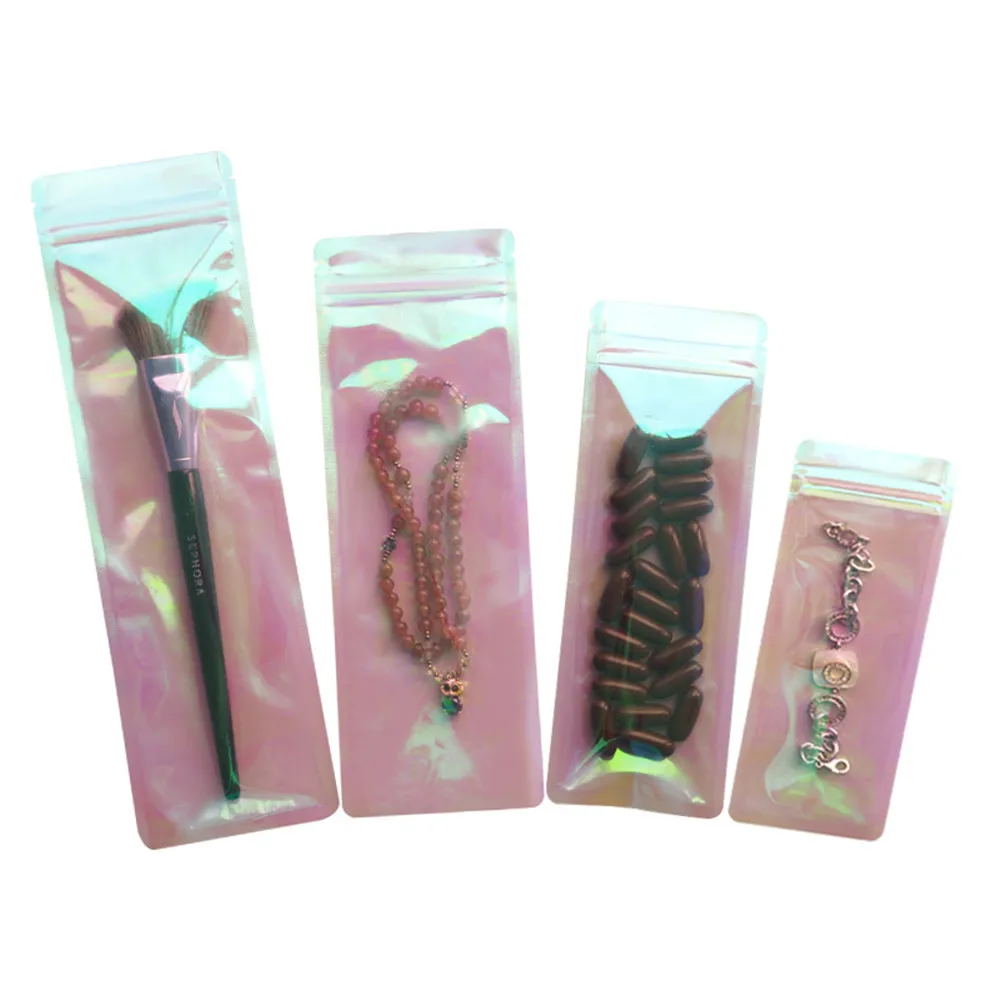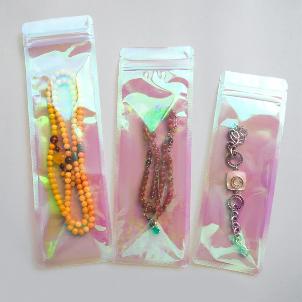 100 шт.лот радужные прозрачные косметические пластиковые пакеты инструменты ювелирные изделия Электроника закуски кисти для макияжа упаковка Пакеты с замком на молнии