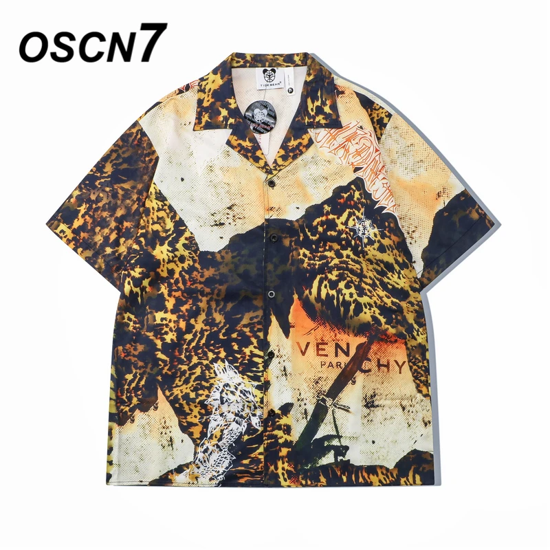 OSCN7 Повседневная Уличная рубашка с коротким рукавом и принтом для мужчин 2022 Гавайские пляжные Большие женские модные рубашки Harujuku для мужчин CMM01
