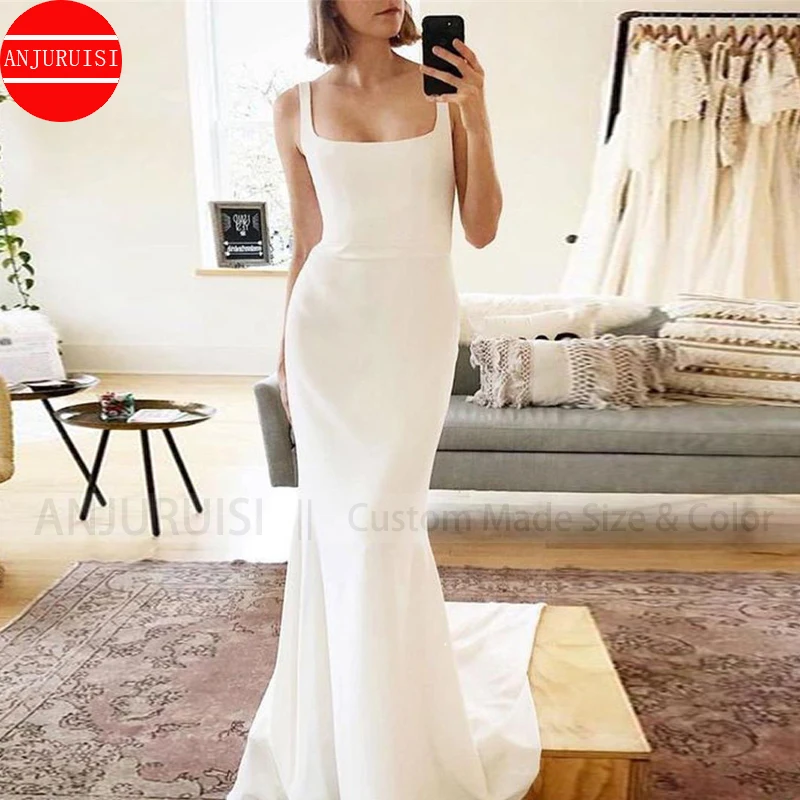Простое свадебное платье с открытыми плечами 2020, атласные свадебн...