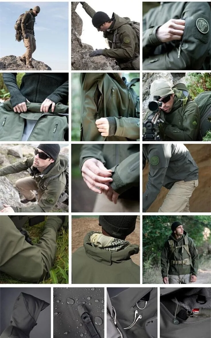 Камуфляжная тактическая куртка из мягкой кожи акулы, Мужская Флисов...