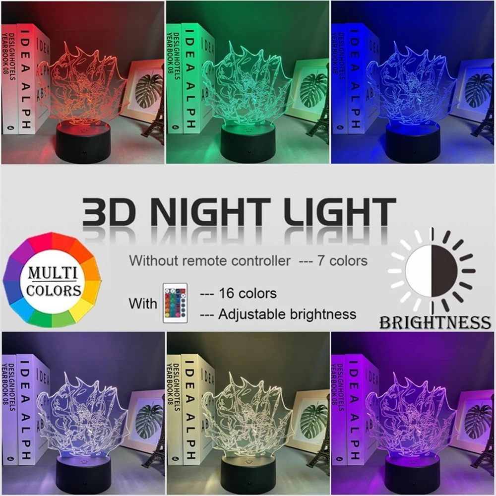 Игра Genshin ударная фигурка Xiao 3d светодиодный ночсветильник лампа Акриловая Светодиодная лампа аниме Genshin Impac Xiao светильник