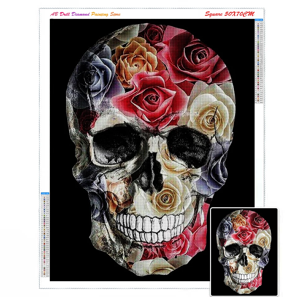 Набор для алмазной вышивки Череп, полноразмернаякруглая мозаика с цветами, подарок для домашнего декора на Хэллоуин