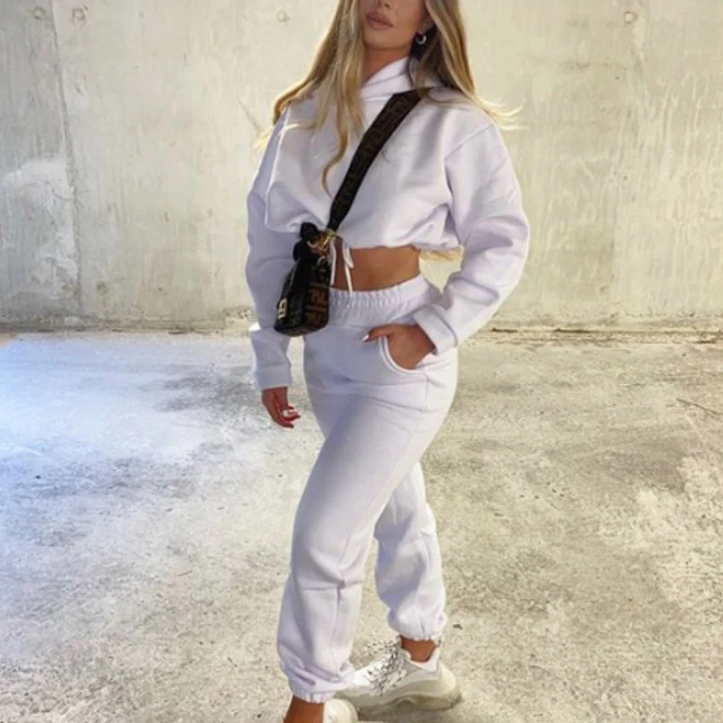 Брючные костюмы с кулиской, Женская Базовая толстовка, эластичные брюки-карандаш, комплект из двух предметов, осенне-зимний Повседневный Женский комплект